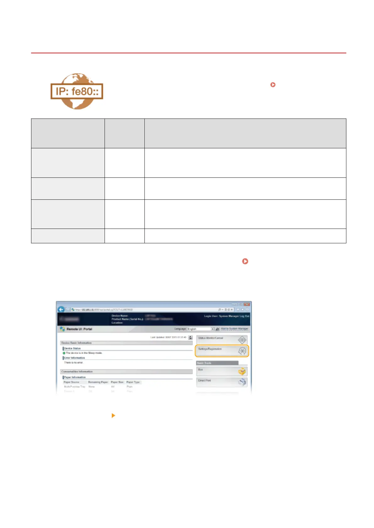 The IPv6 addresses of the machine can be congured via the Remote UI. Before