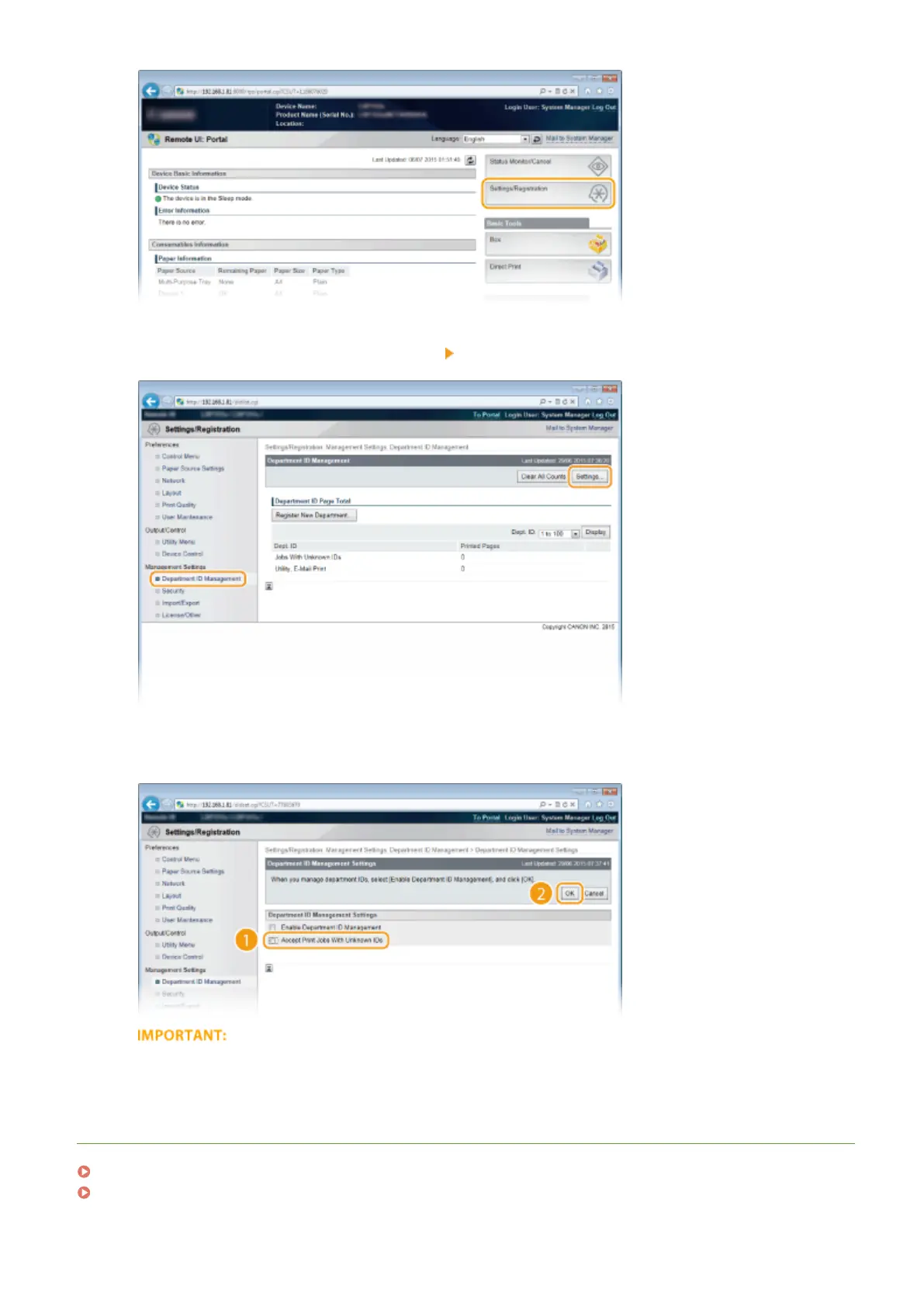 Management or perform Direct Print from the Remote UI that the users log on in Management Mode.