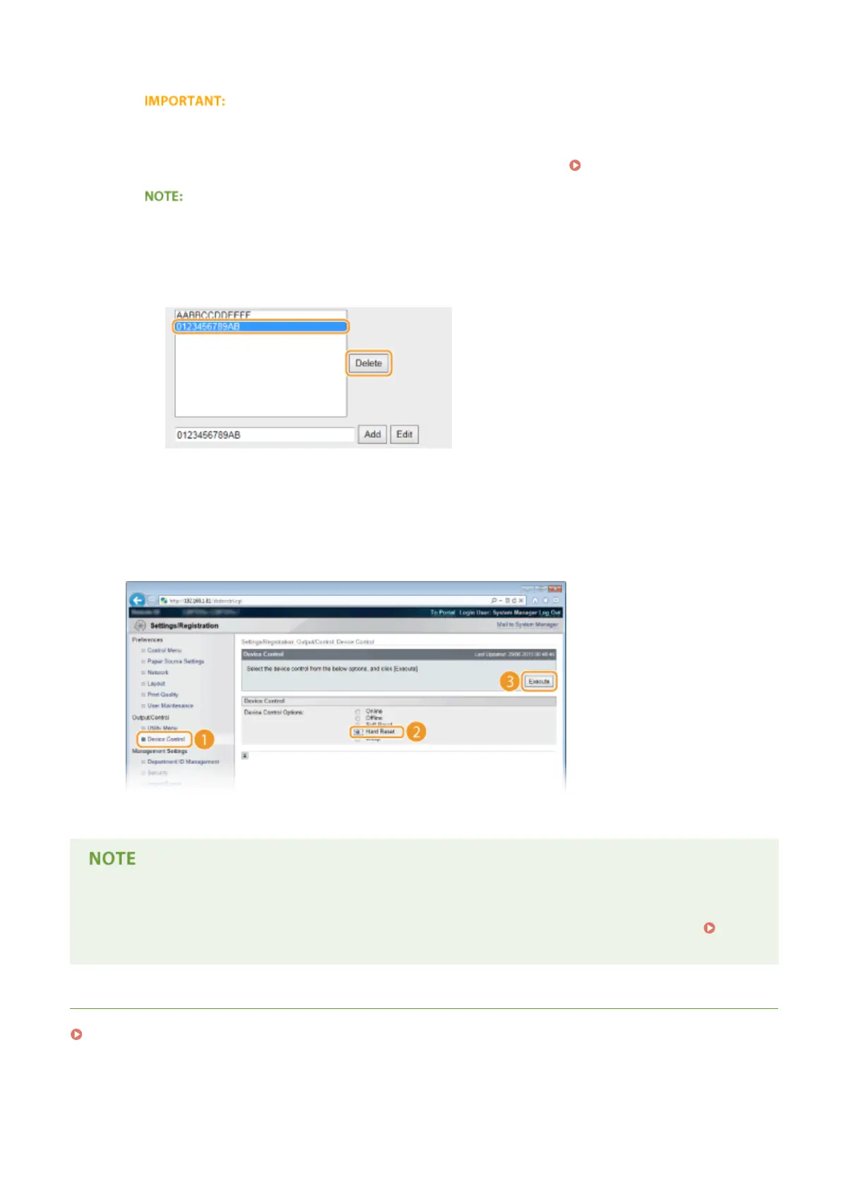 ● If MAC addresses are incorrectly entered, you may become unable to access the machine from the