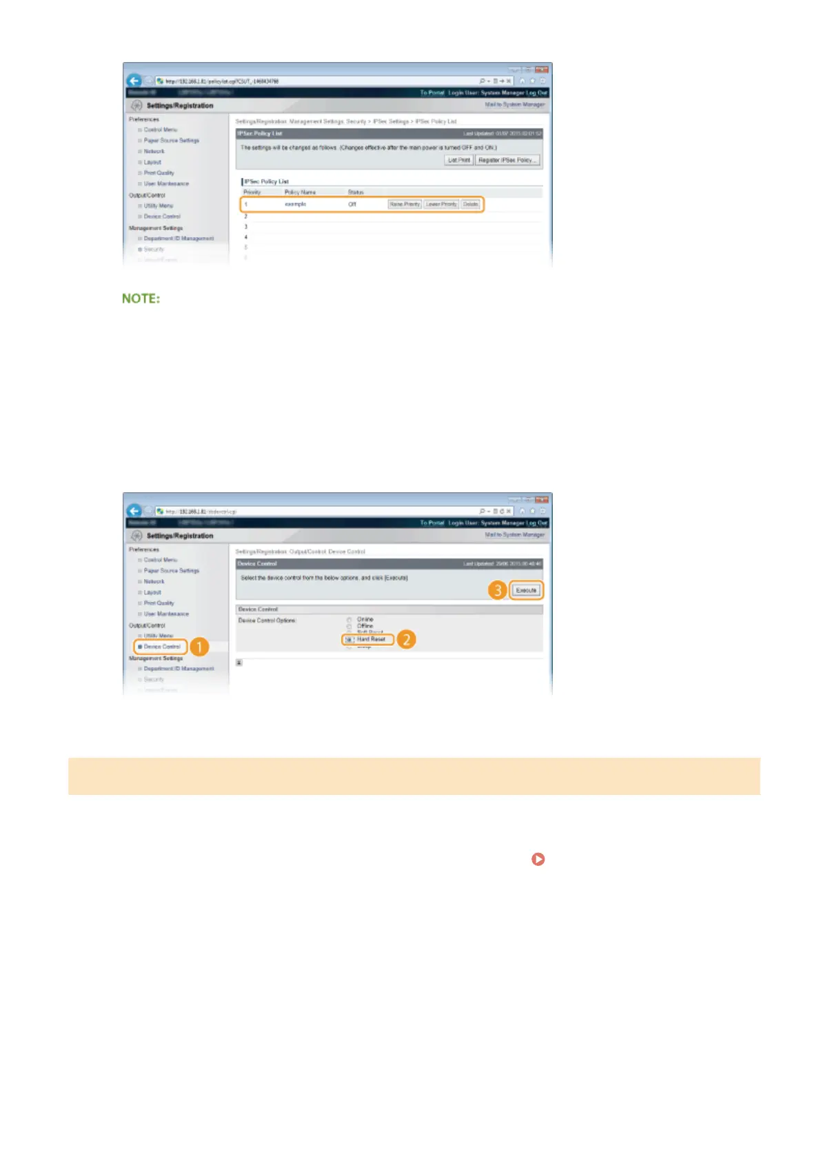 Start the Remote UI and log on in Management Mode. Starting Remote UI(P. 333)