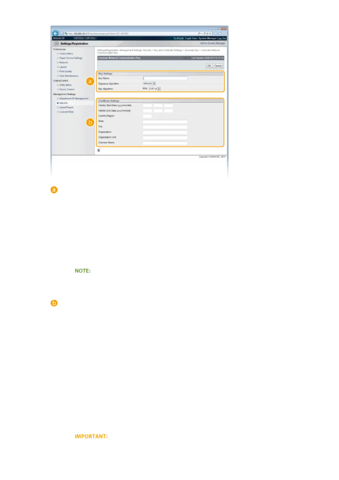 ● [512 bit] cannot be selected for the key length, if [SHA384] or [SHA512] is selected for