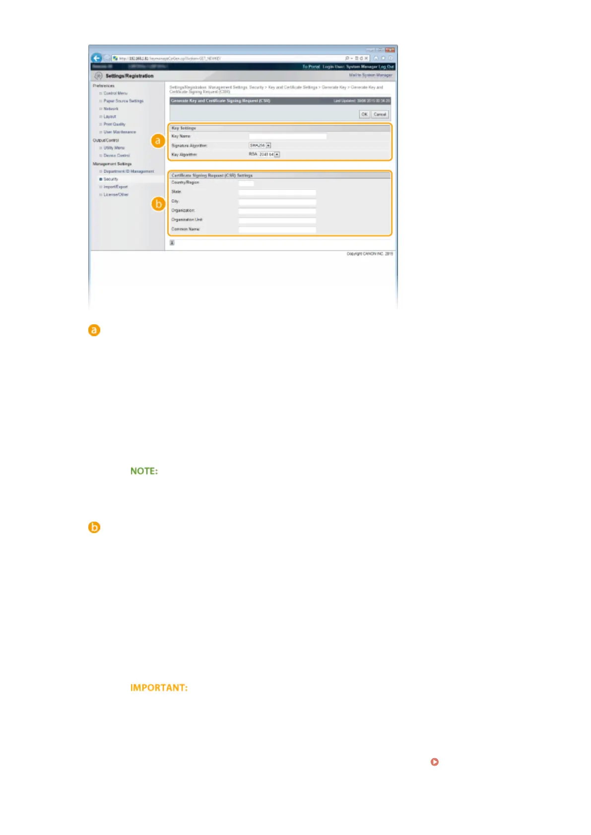 ● [512 bit] cannot be selected for the key length, if [SHA384] or [SHA512] is selected for