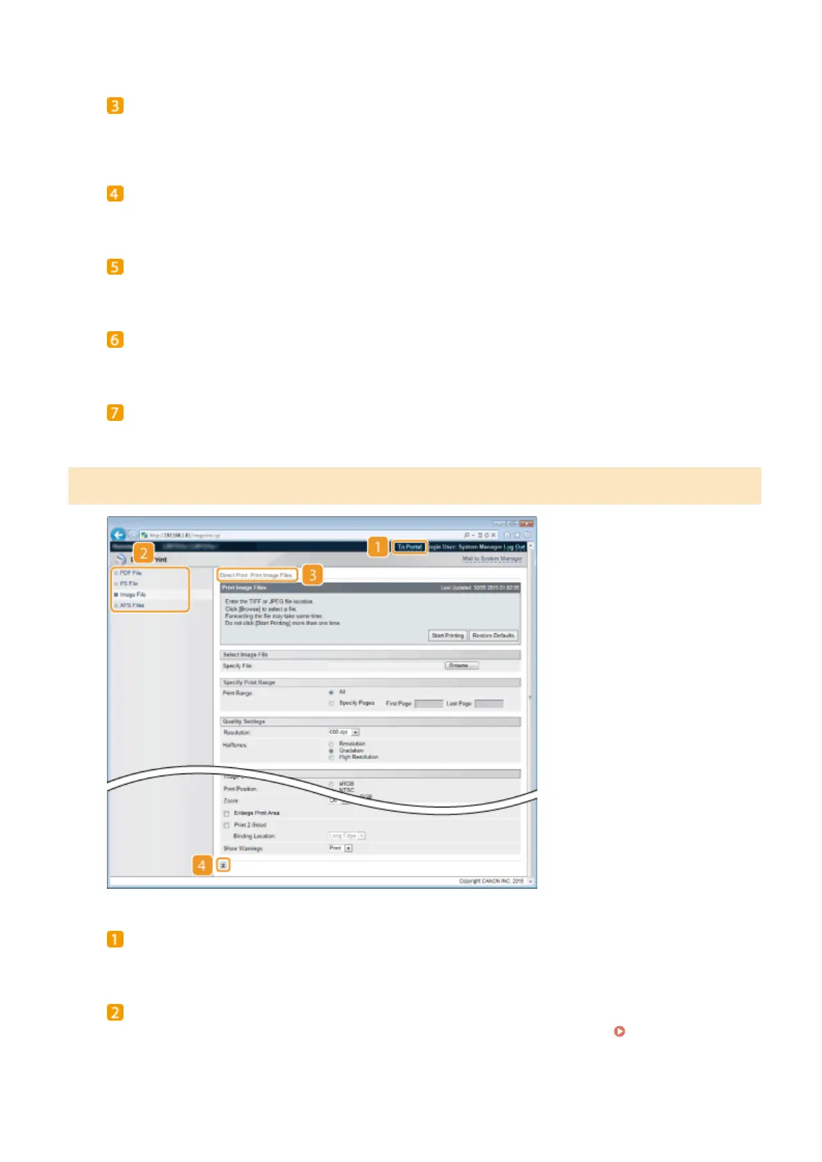 Displays the page for specifying the le format of a le to be printed by Direct Print.