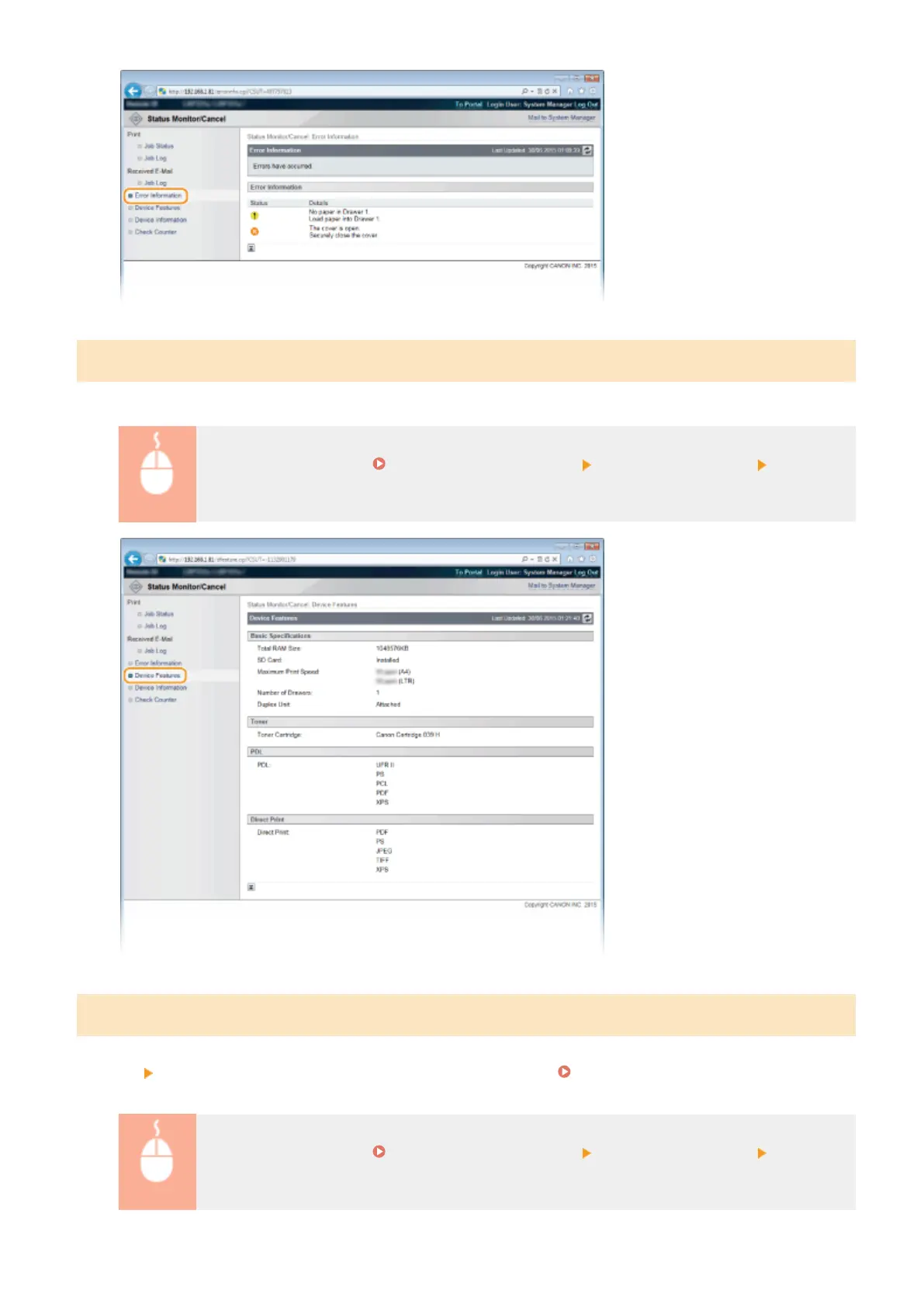 Log on to the Remote UI ( Starting Remote UI(P. 333) ) [Status Monitor/Cancel] [Device