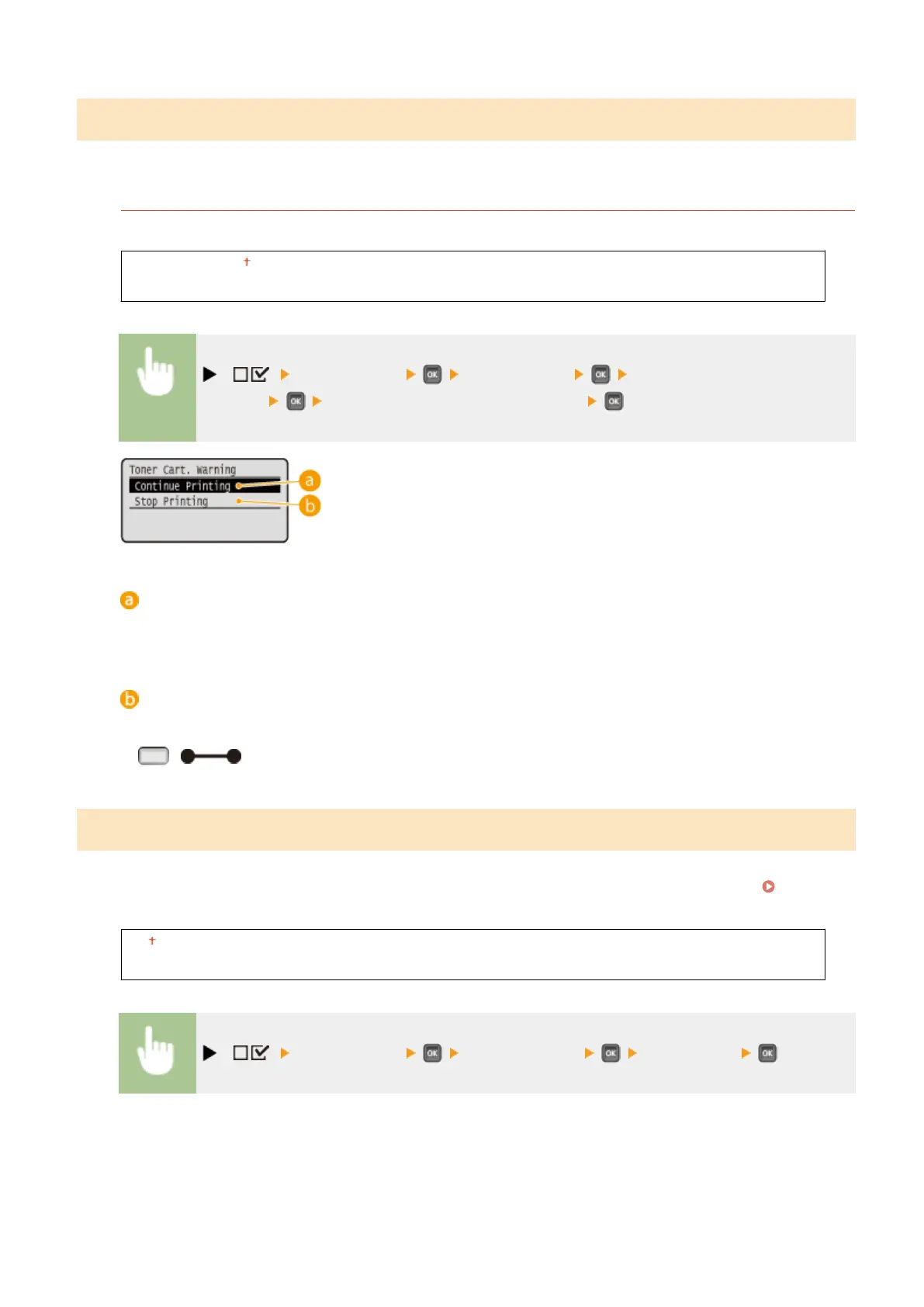 Specify how the machine should behave when a toner cartridge lifetime message appears.
