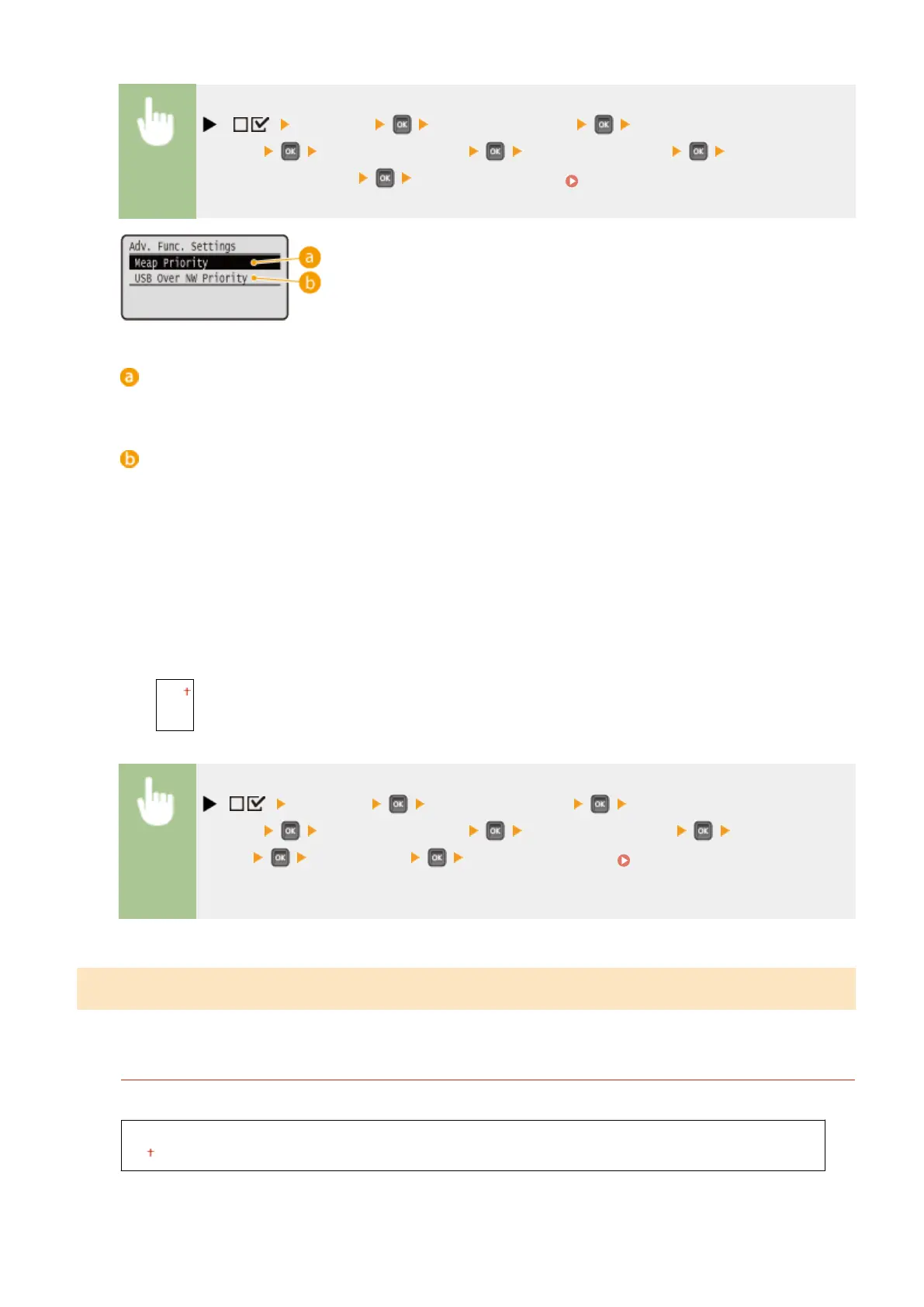 message <USB Adv. Functions> <Adv. Func. Settings> <Meap Priority> or