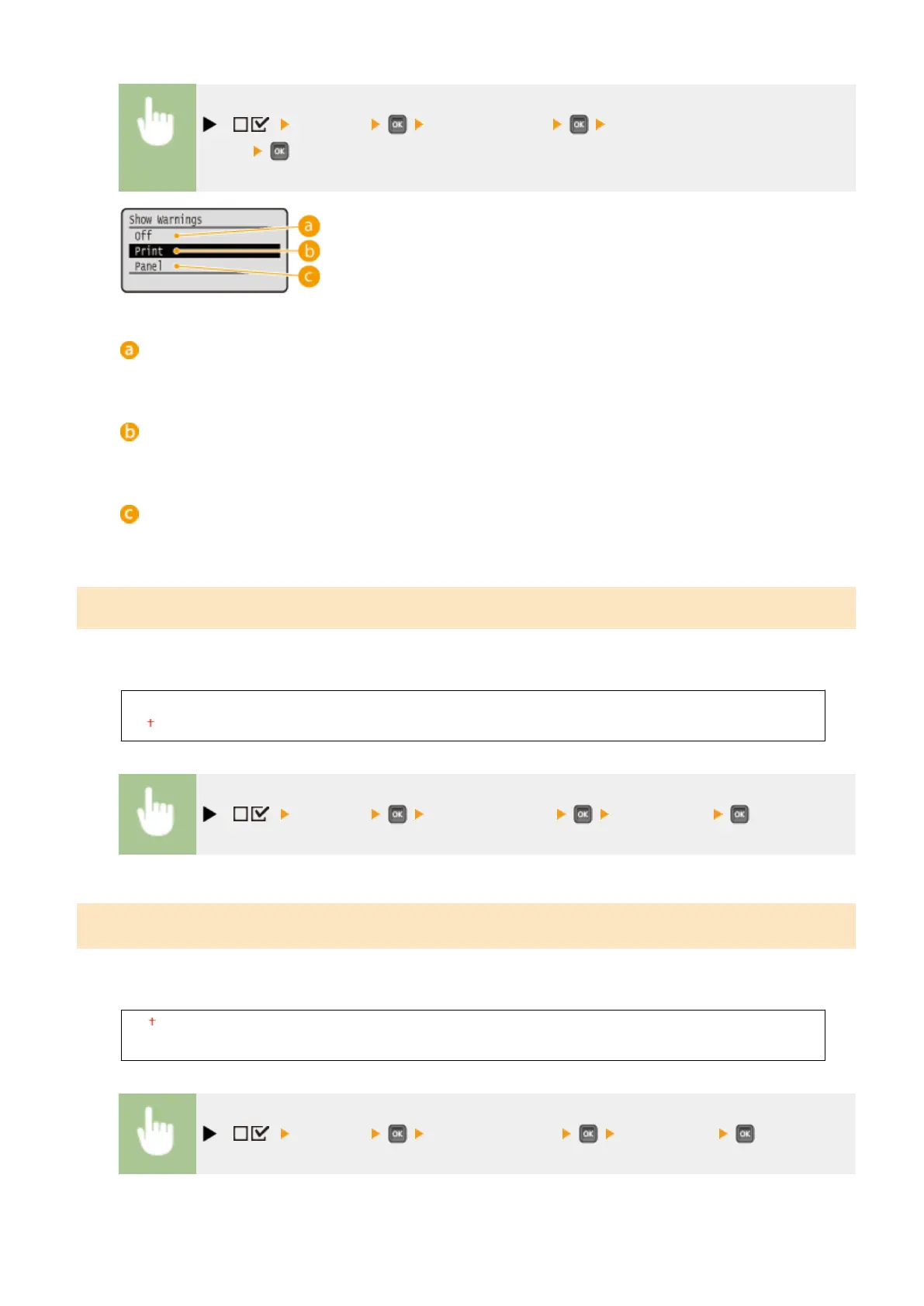 ( ) <Imaging> <Show Warnings> Select how the machine should
