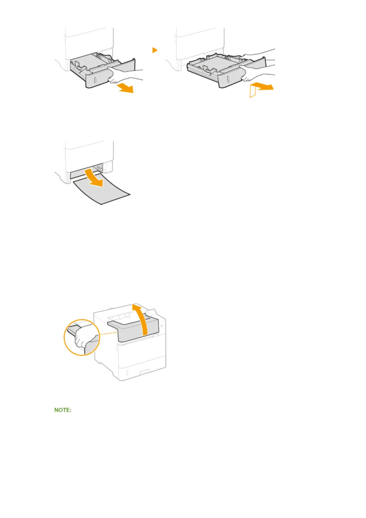 ● When the top cover is opened and closed, the paper jam message disappears.