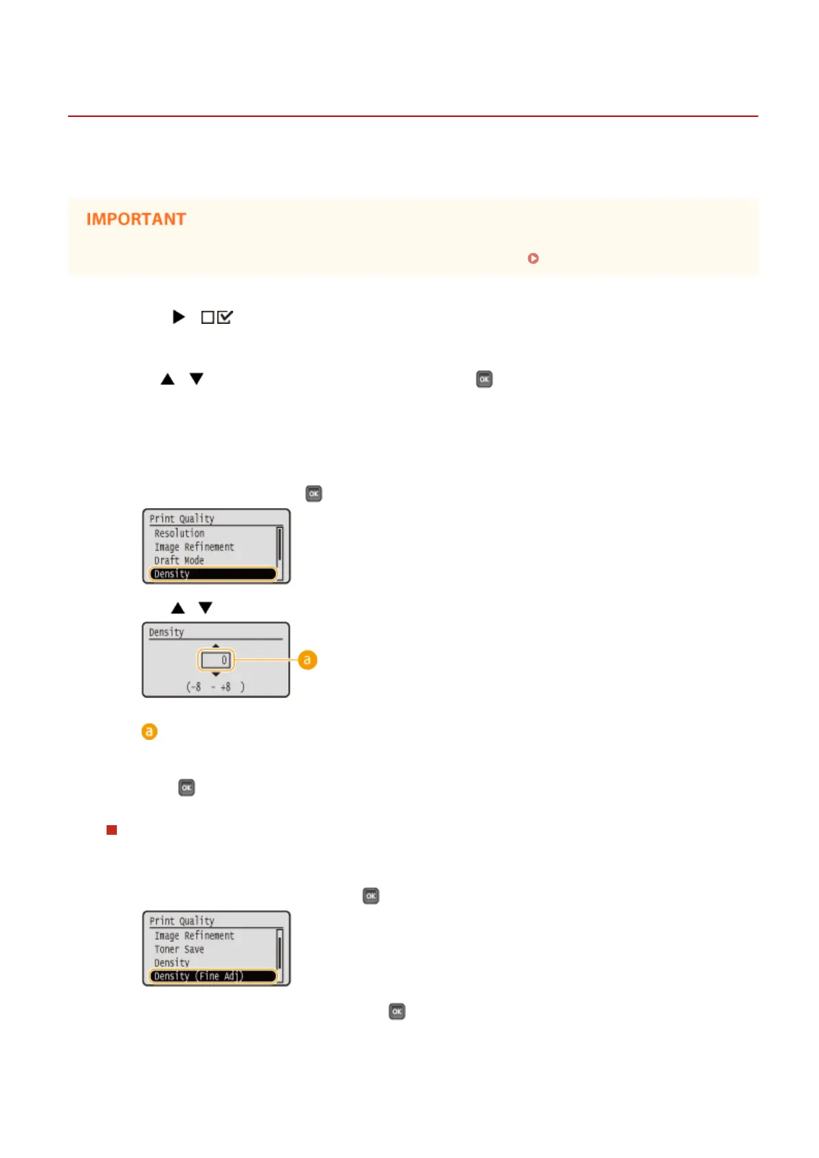 If the resulting print is darker or lighter than expected, you can adjust the toner density. You can make ne adjustment