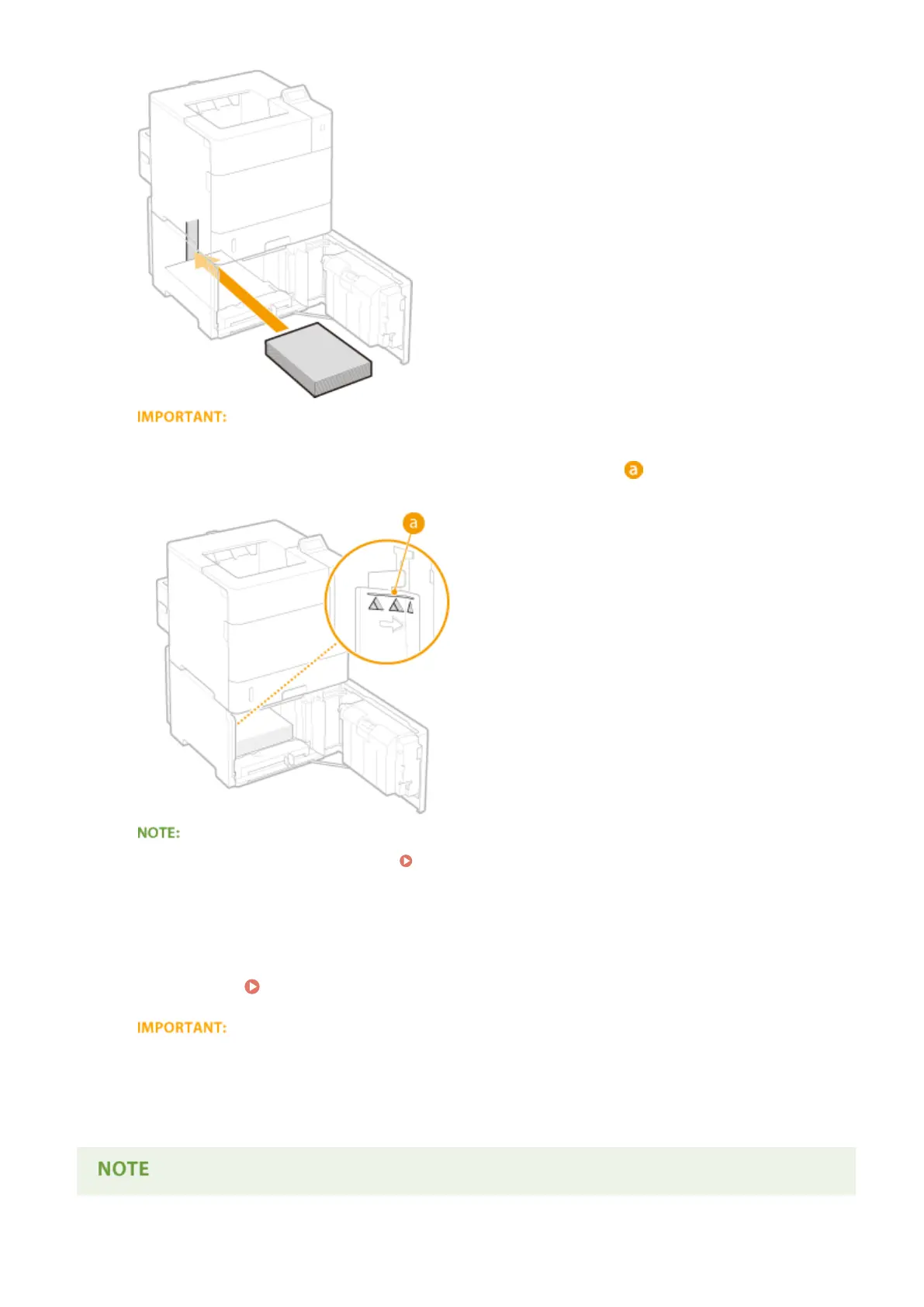 ● Make sure that the paper stack does not exceed the load limit line ( ). Loading too much paper can