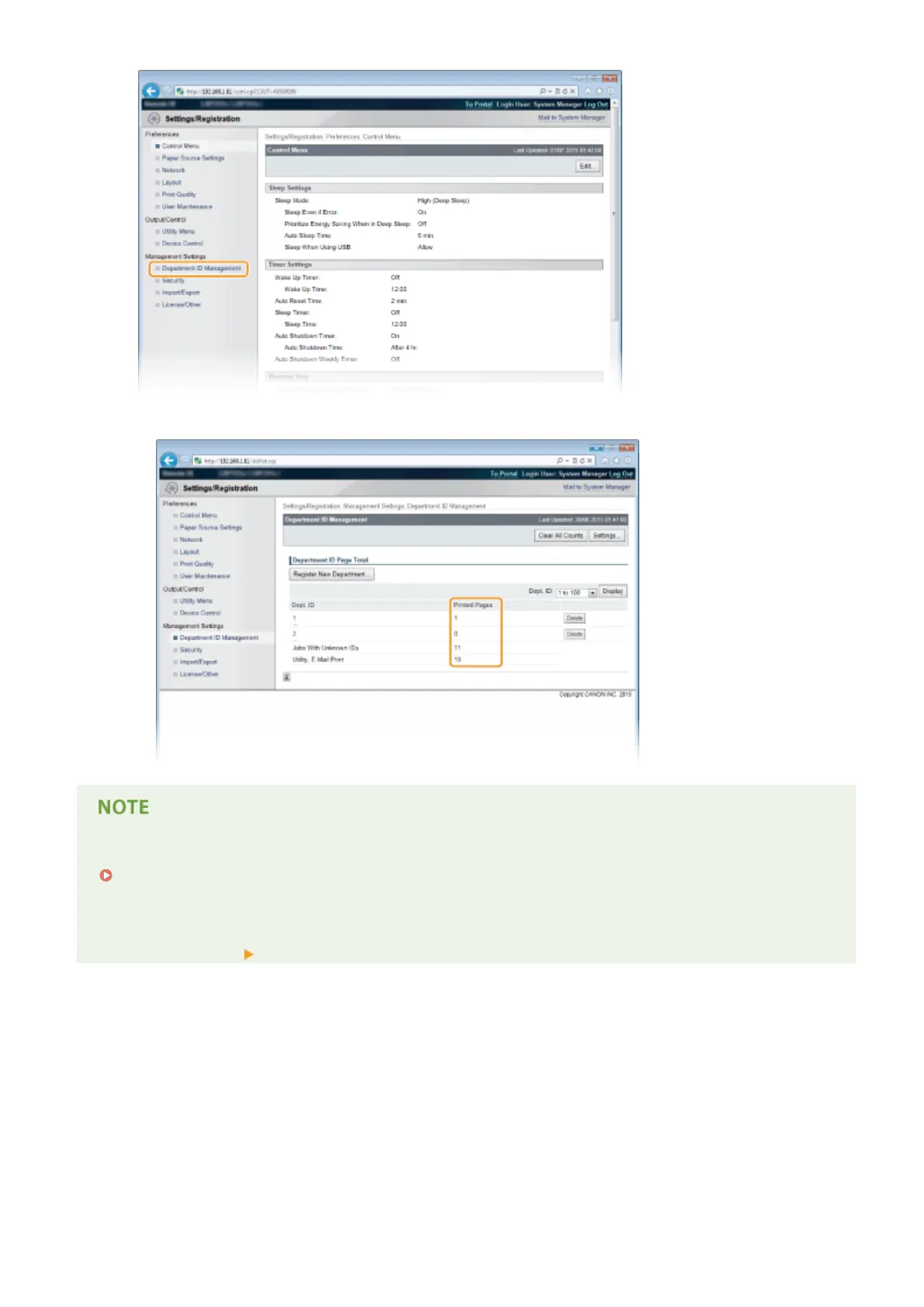 ➠ The number of printed pages is displayed for each Department ID under [Printed Pages].