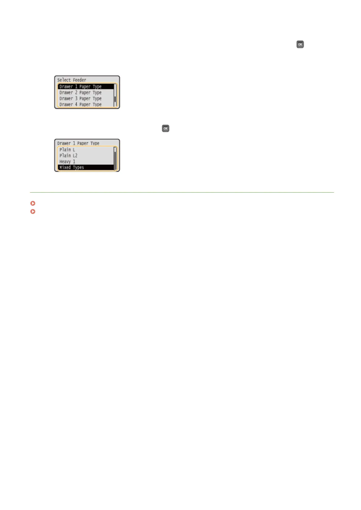 Select one of <Drawer 1 Paper Type> to <Drawer 5 Paper Type>, and press .