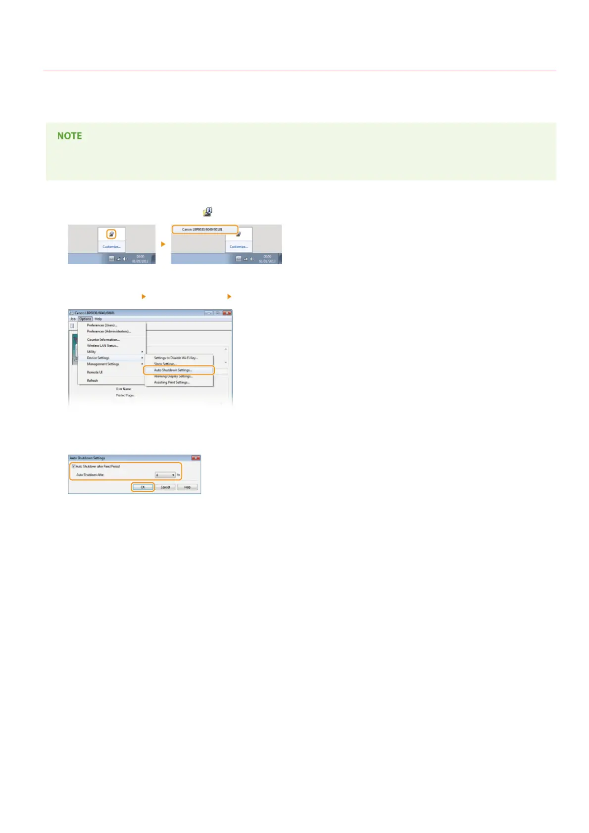 power is turned OFF is 4 hours. If you want to change this setting, perform the following procedure in the Printer Status Window.