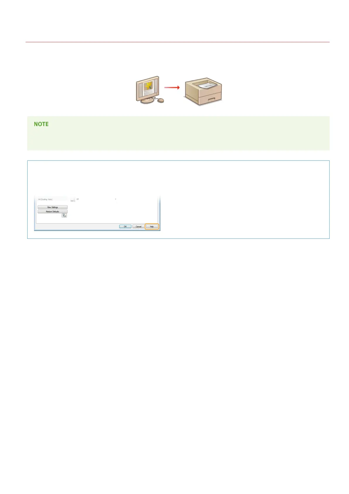 Clicking [Help] on the printer driver screen displays the Help screen. On this screen, you can see detailed descriptions that are
