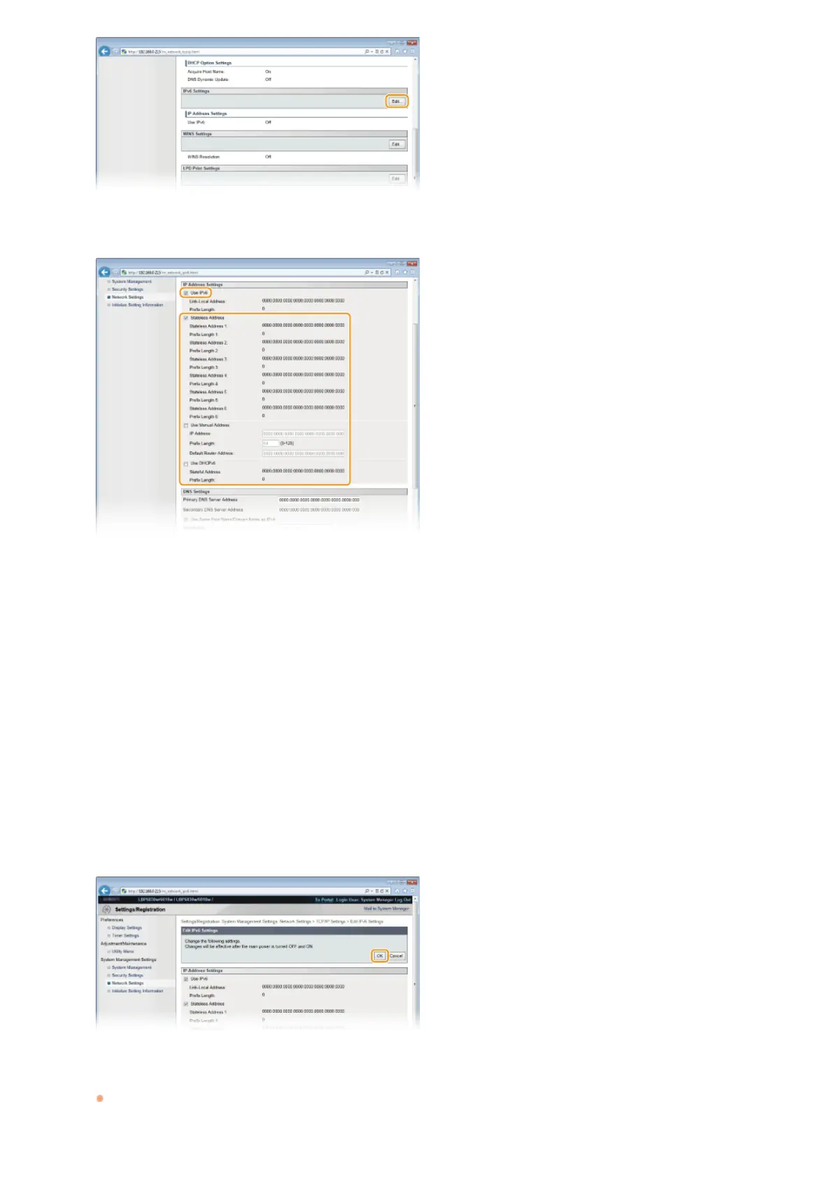Select the check box to use IPv6 on the machine. Clear the check box if you do not want to use IPv6.