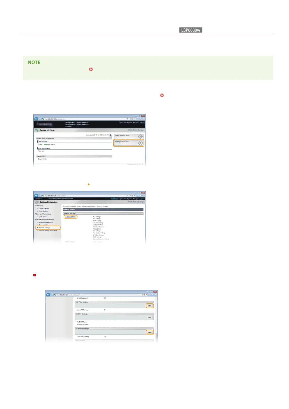Click [Edit] in [LPD Print Settings] or [RAW Print Settings].
