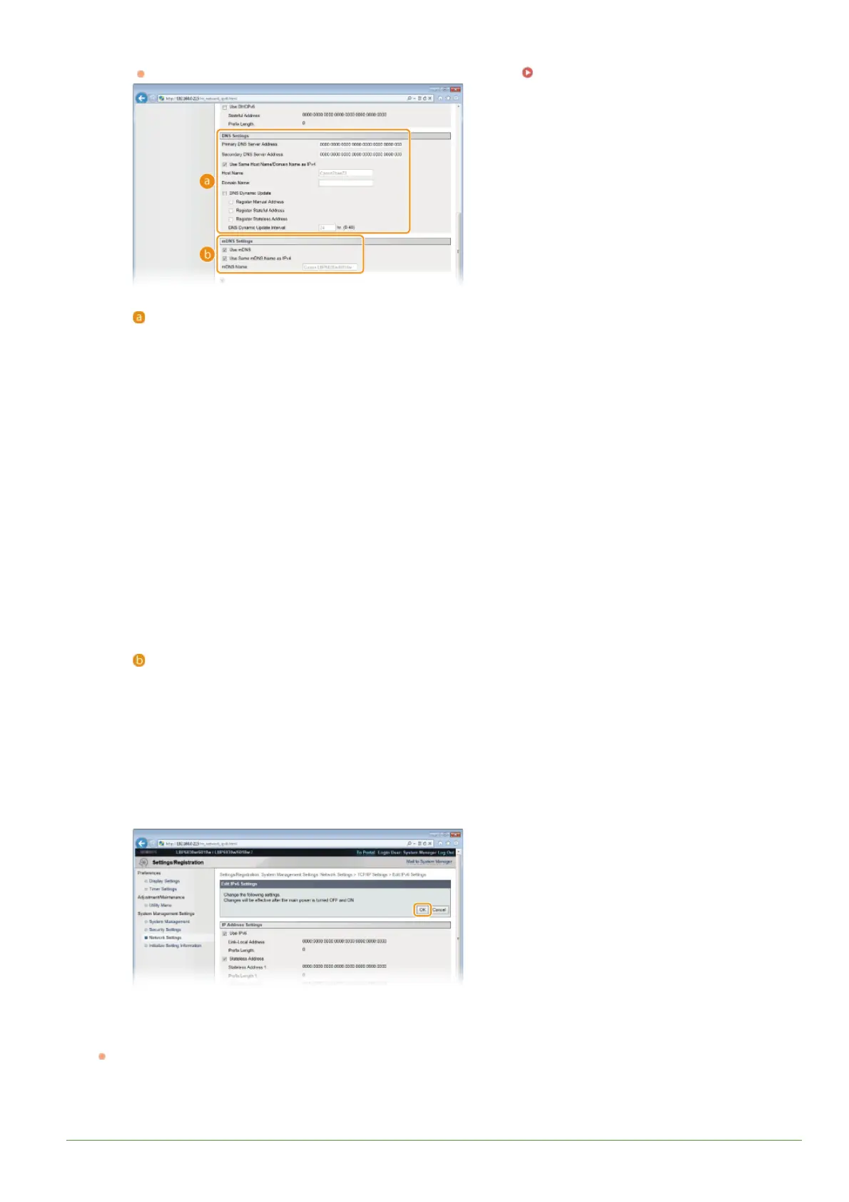 the machine restarts. Clear the check box and enter a name in [mDNS Name] if you want to use different settings from