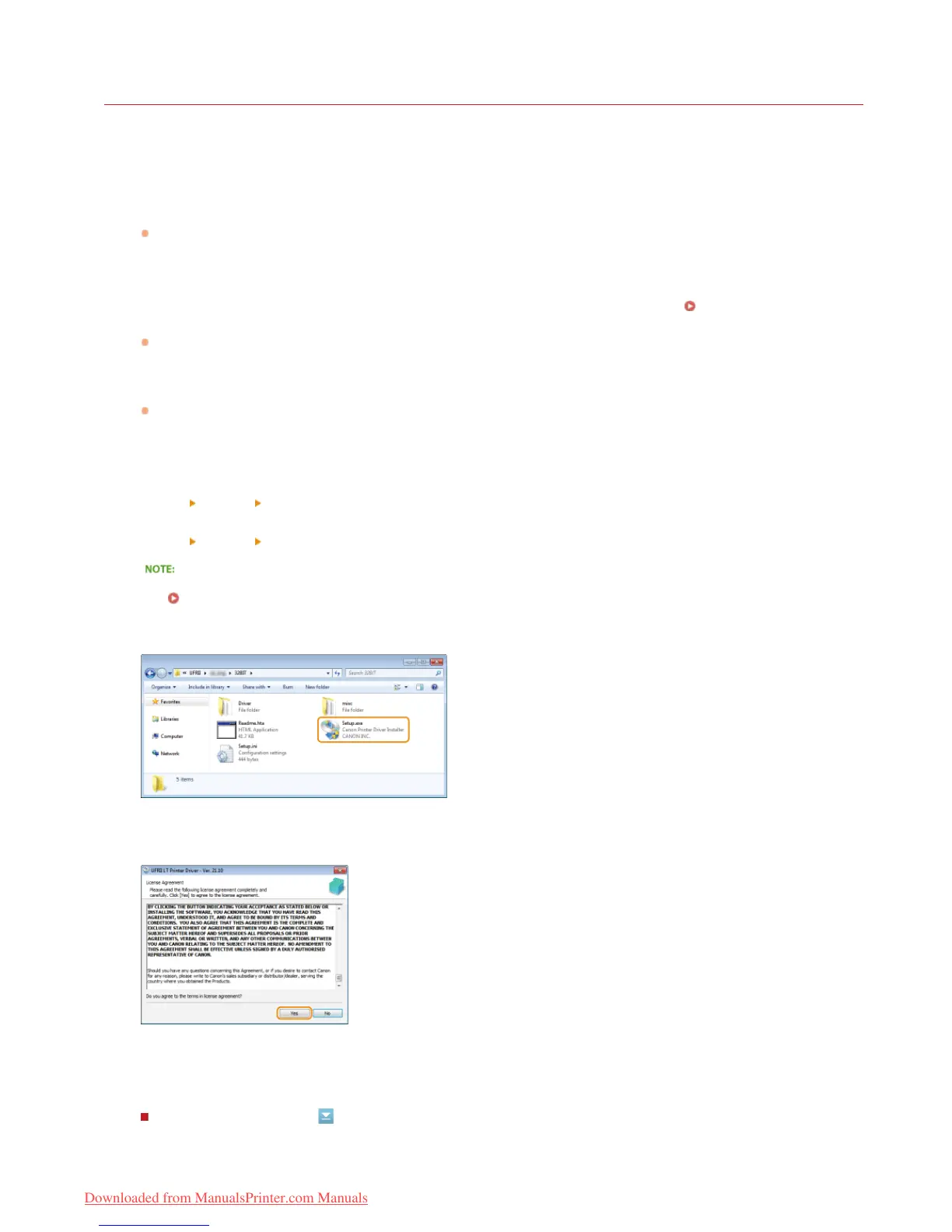 Before starting installation of the printer driver, use the "MF/LBP Network Setup Tool" included in the downloaded file to