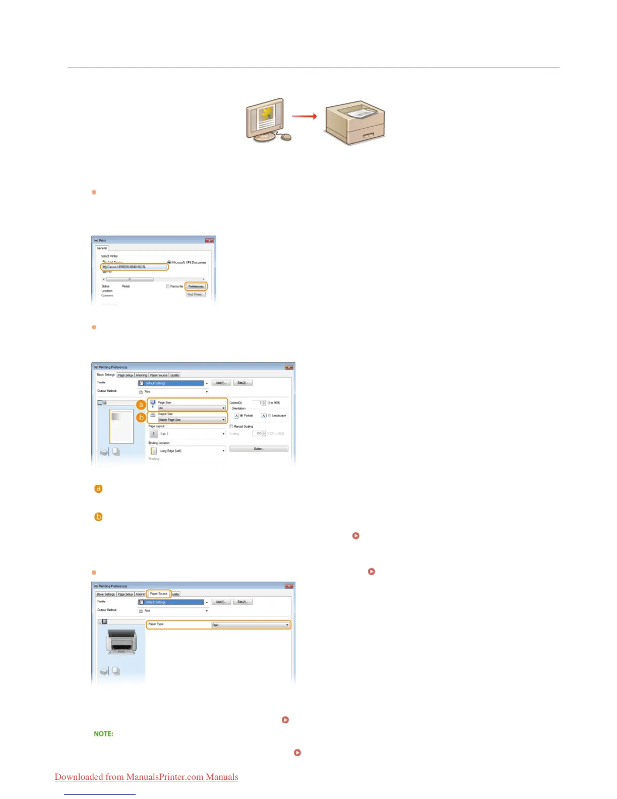 Set [Paper Type] according to the type of paper to be used in the printing. Paper Type and Printer Driver Paper Settings