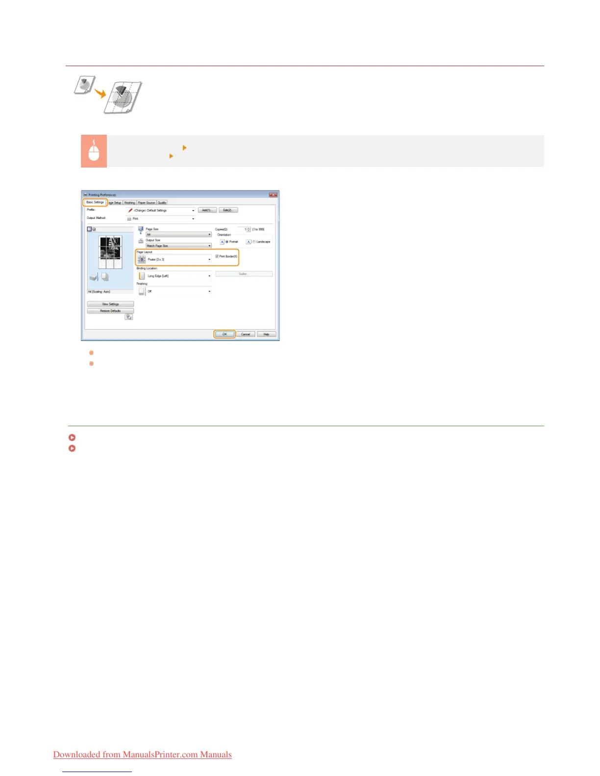 In [Page Layout], select a poster size by specifying the number of parts to be printed, for example