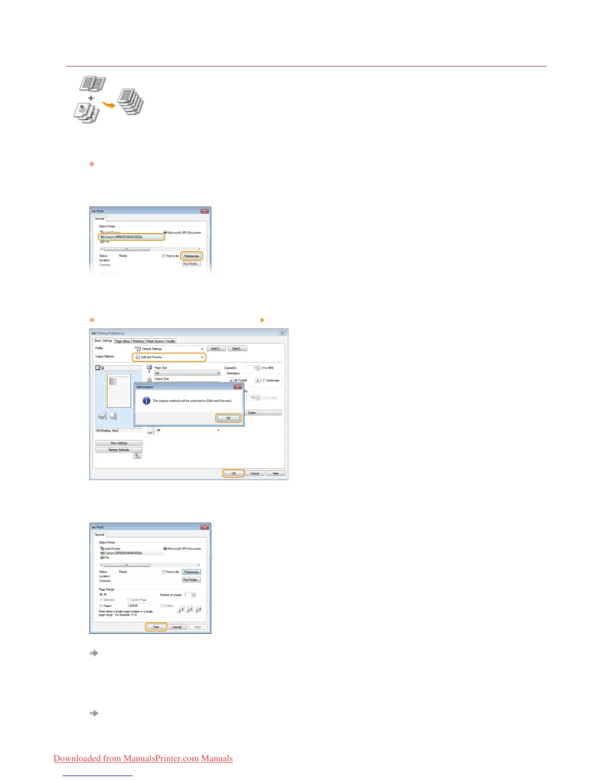 By using Canon PageComposer, you can combine multiple documents into one print job and print the job with
