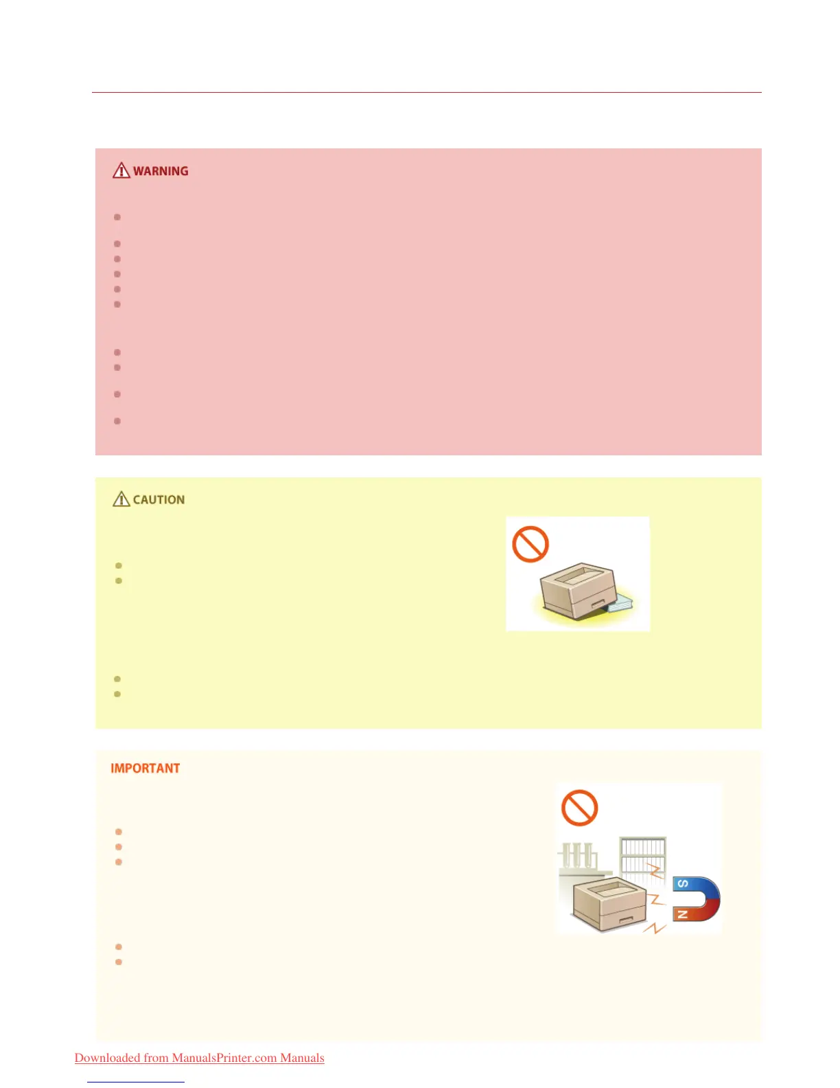 To use this machine safely and in a trouble-free way, carefully read the following precautions and install the machine in an appropriate