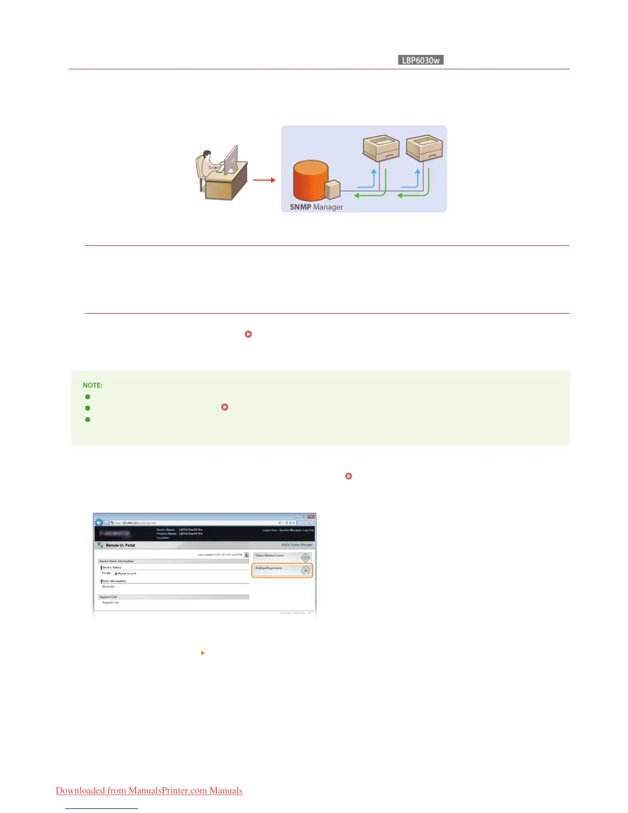 the status of the machine from a computer when you print documents or use the Remote UI. You can enable either SNMPv1 or SNMPv3,