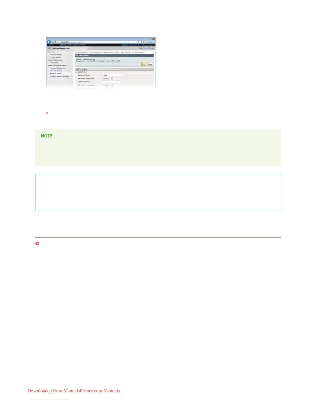 If both versions of SNMP are disabled, some of the functions of the machine become unavailable, such as obtaining machine