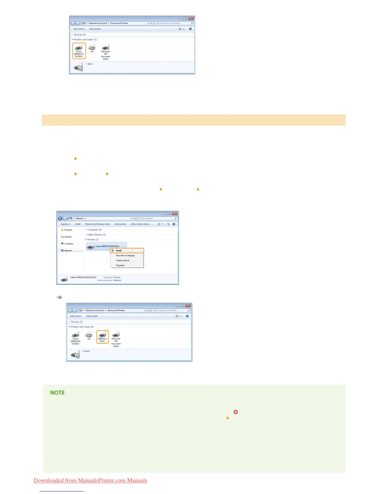 When you have finished installing the network printer, the icon added in step 13 of Installing a Printer Driver is no longer