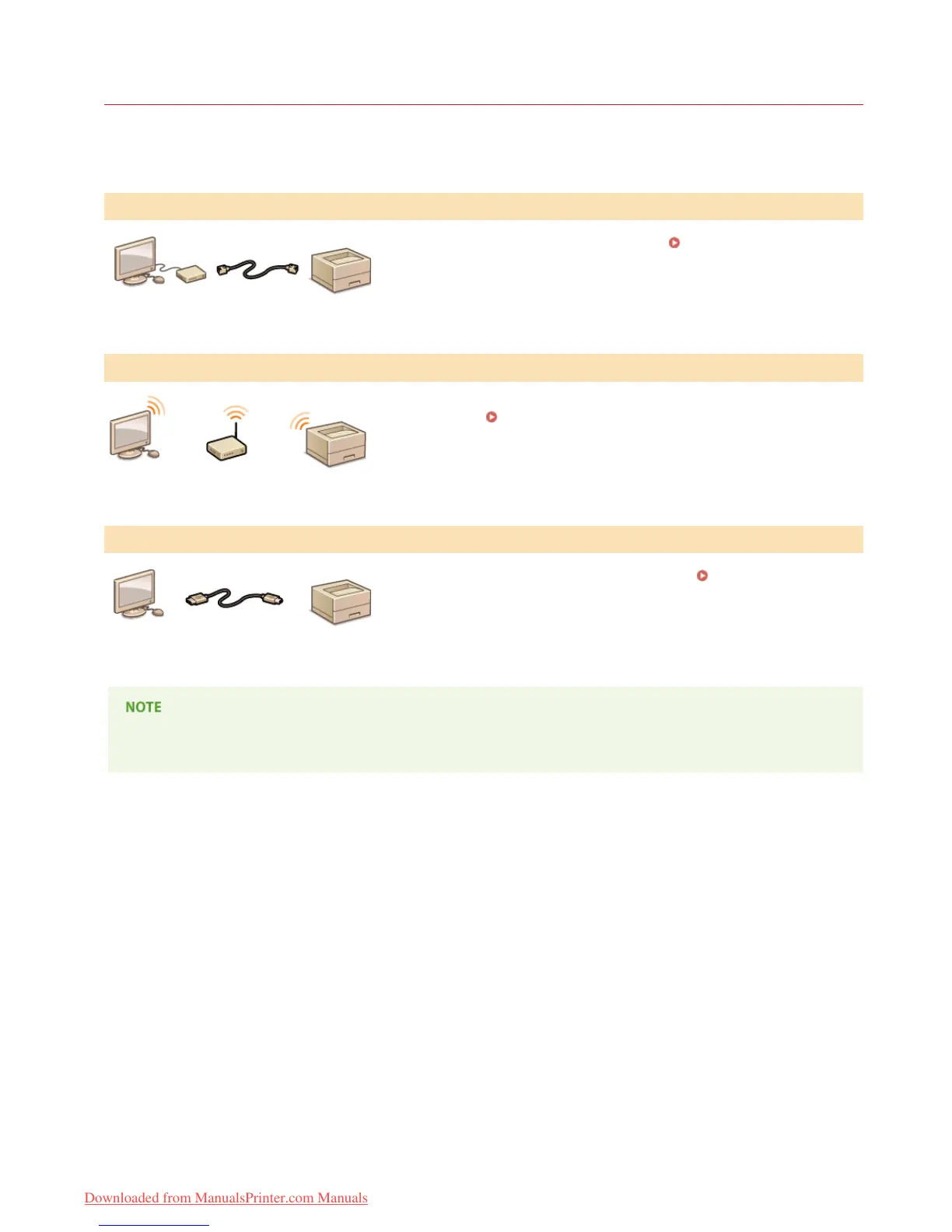 The supported connection methods differ depending on the printer you are using. See the "e-Manual" supplied with your printer