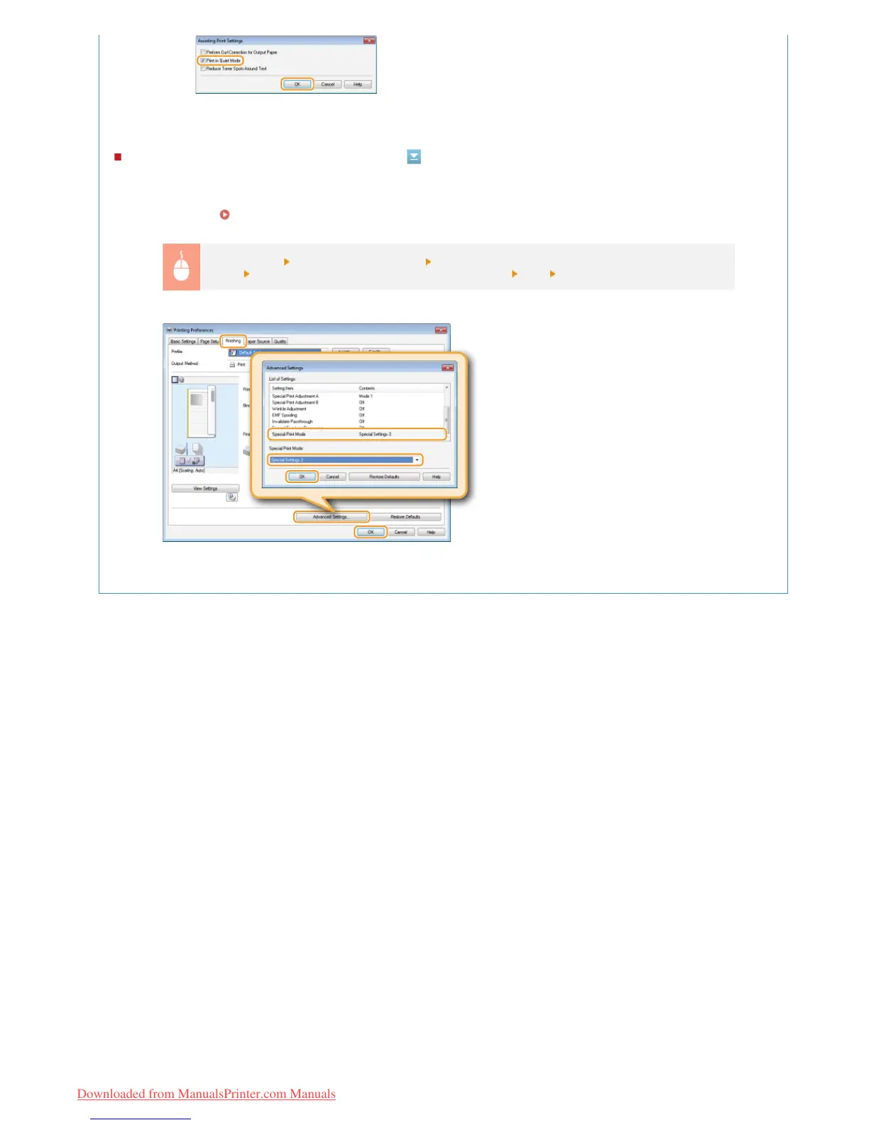 Click [Advanced Settings] Select [Special Print Mode] in the [Advanced Settings]