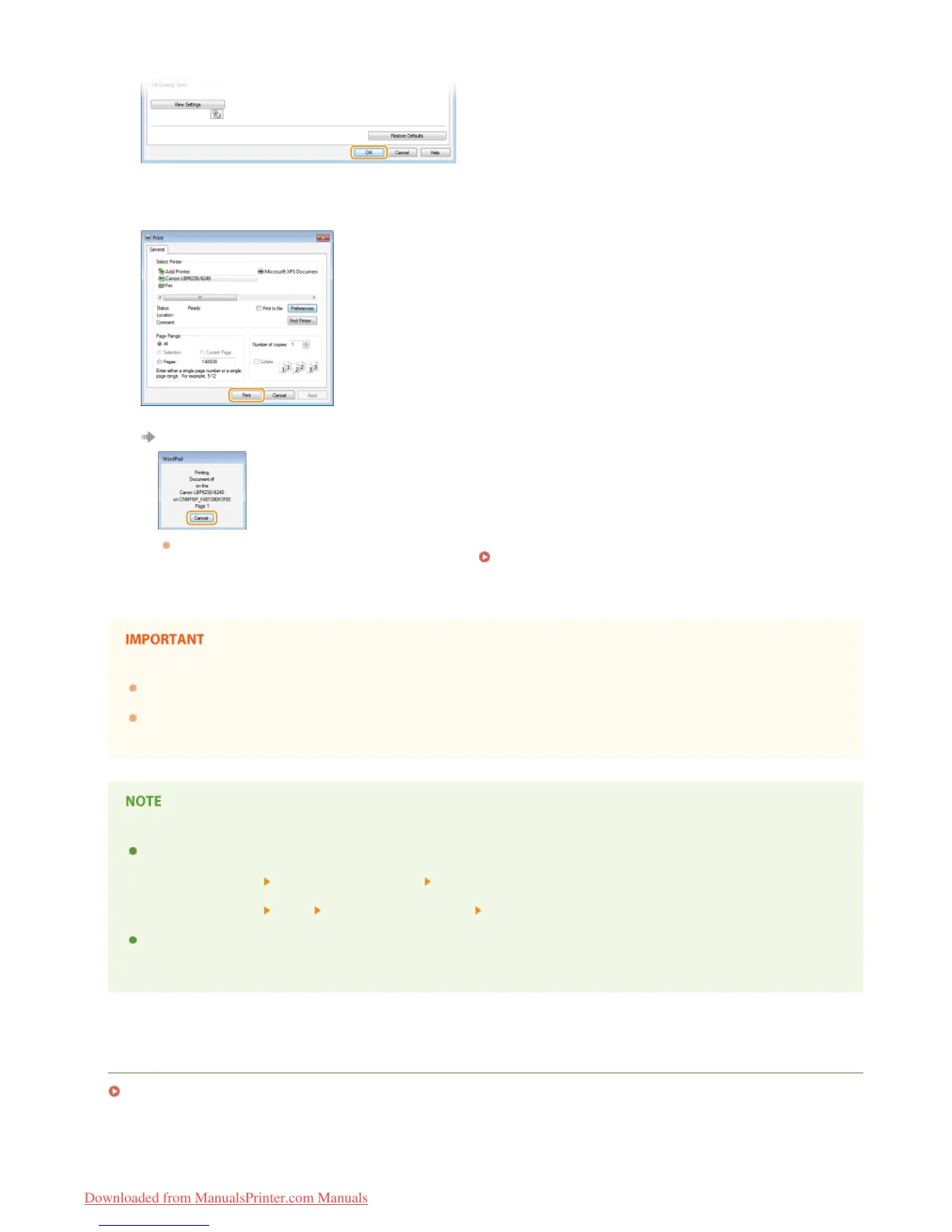 If a screen like the one shown above appears, you can cancel printing by clicking [Cancel]. If the screen disappears or is