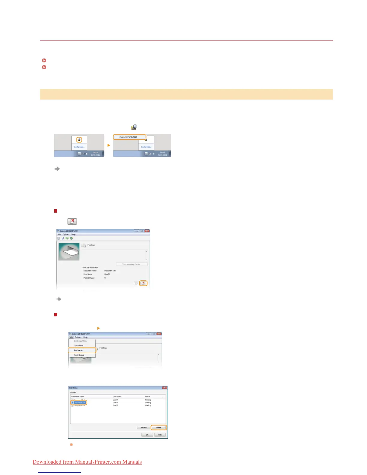 You can cancel print jobs from the Printer Status Window.