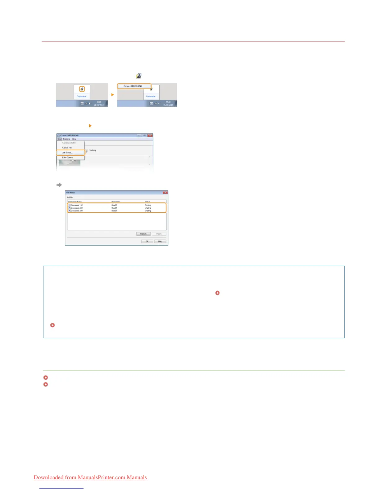 You can check the print status on the [Job Status] page of the Remote UI. Checking the Current Status of Print Documents