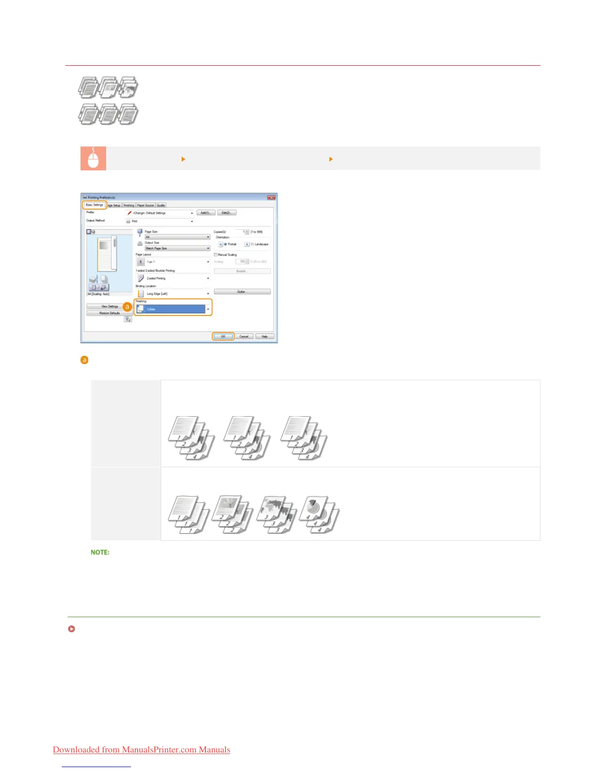 Specify the sorting method of the printouts when printing multiple-page documents.