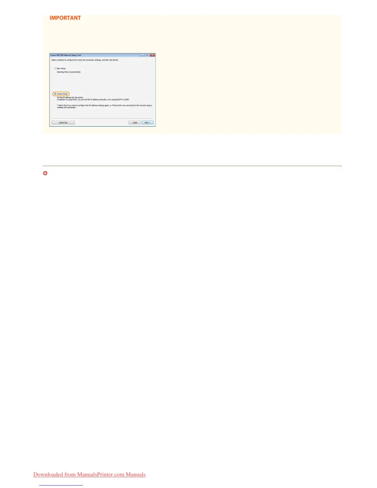 driver (Printer Driver Installation Guide). When configuring the wired LAN connection, select [Custom Setup] for the configuration