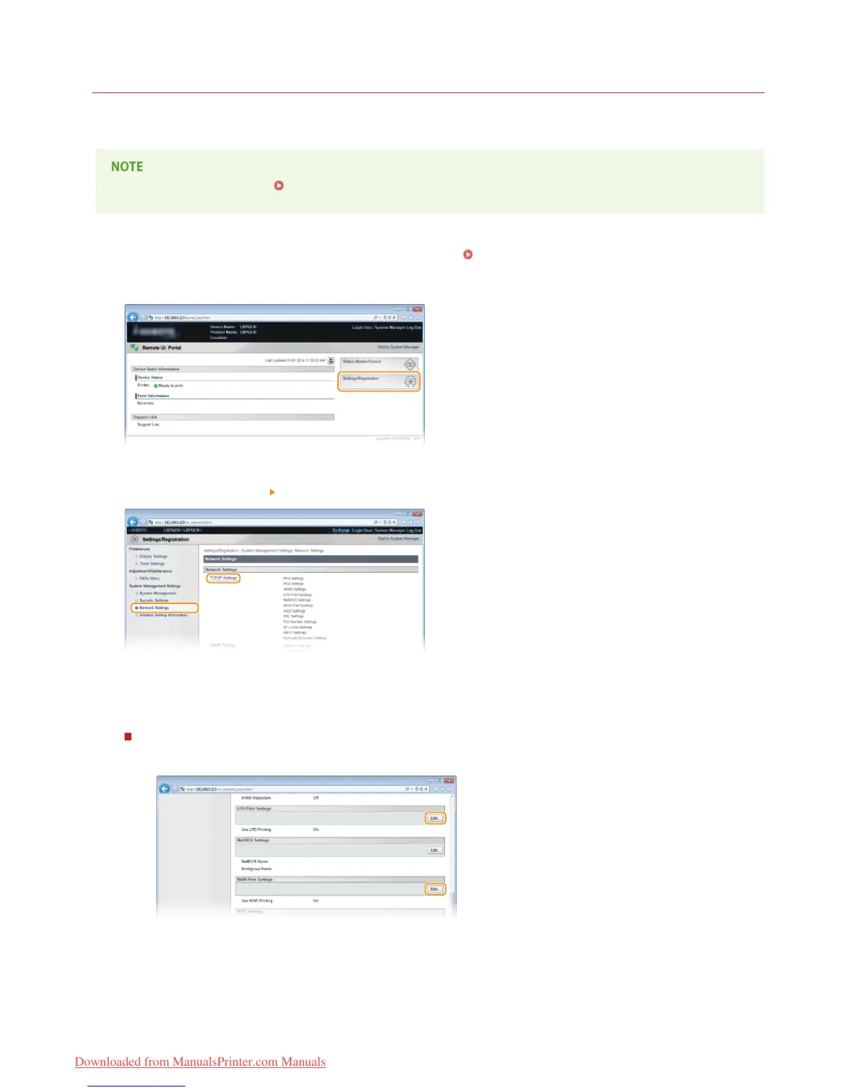 The following explains how to configure printing protocols for printing documents from computers. The protocols supported by the