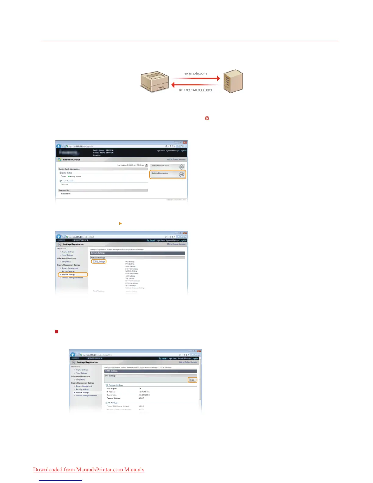 Configure the DNS, mDNS, or DHCP option settings as necessary according to your network. Note that the procedures for configuring