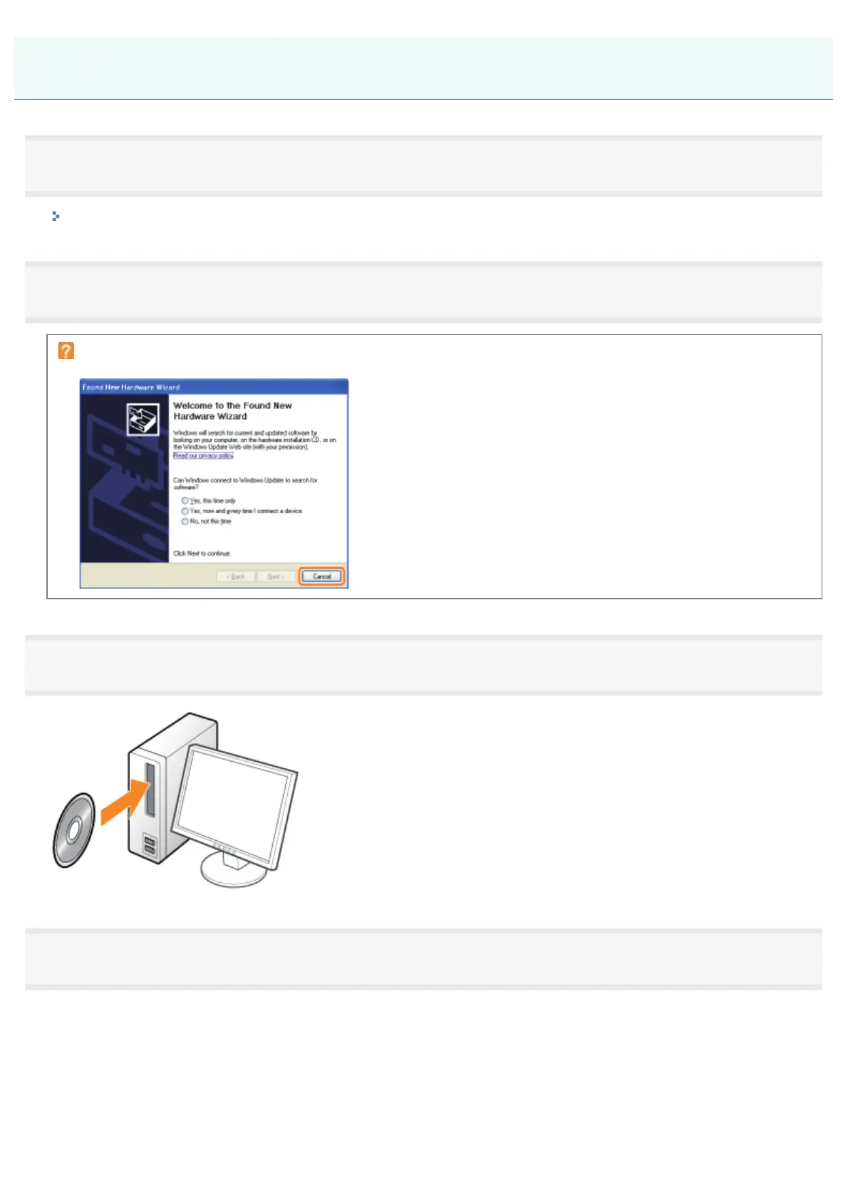 If a wizard and so on appear through the Plug and Play automatic setup (USB connection)