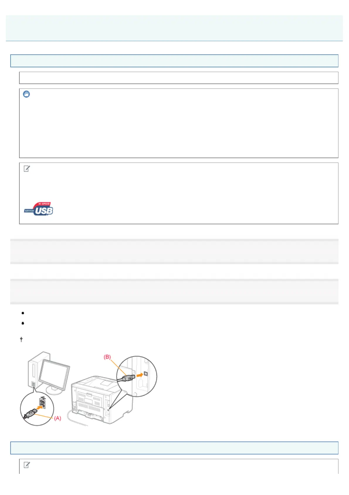 Square end (B): Connects to the USB connector on this printer.