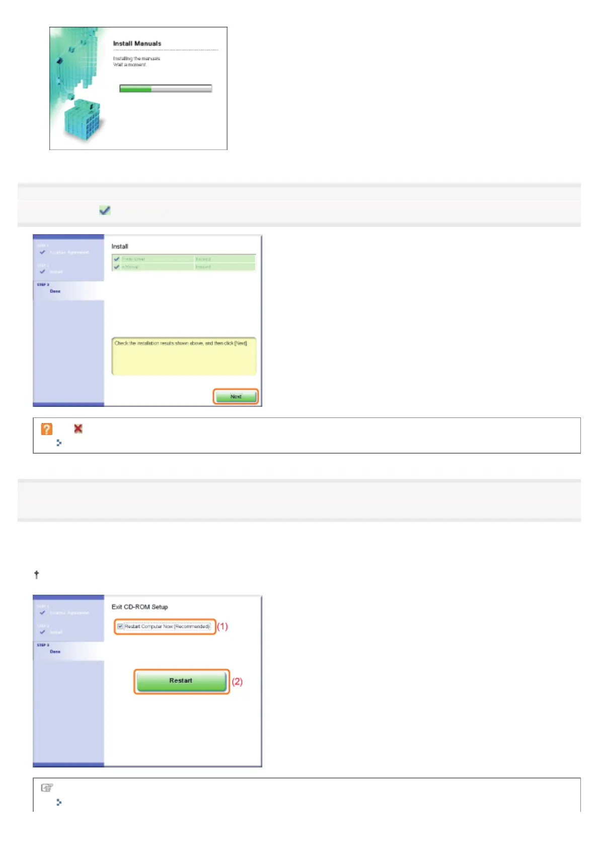 (1) Select the [Restart Computer Now (Recommended)] check box.