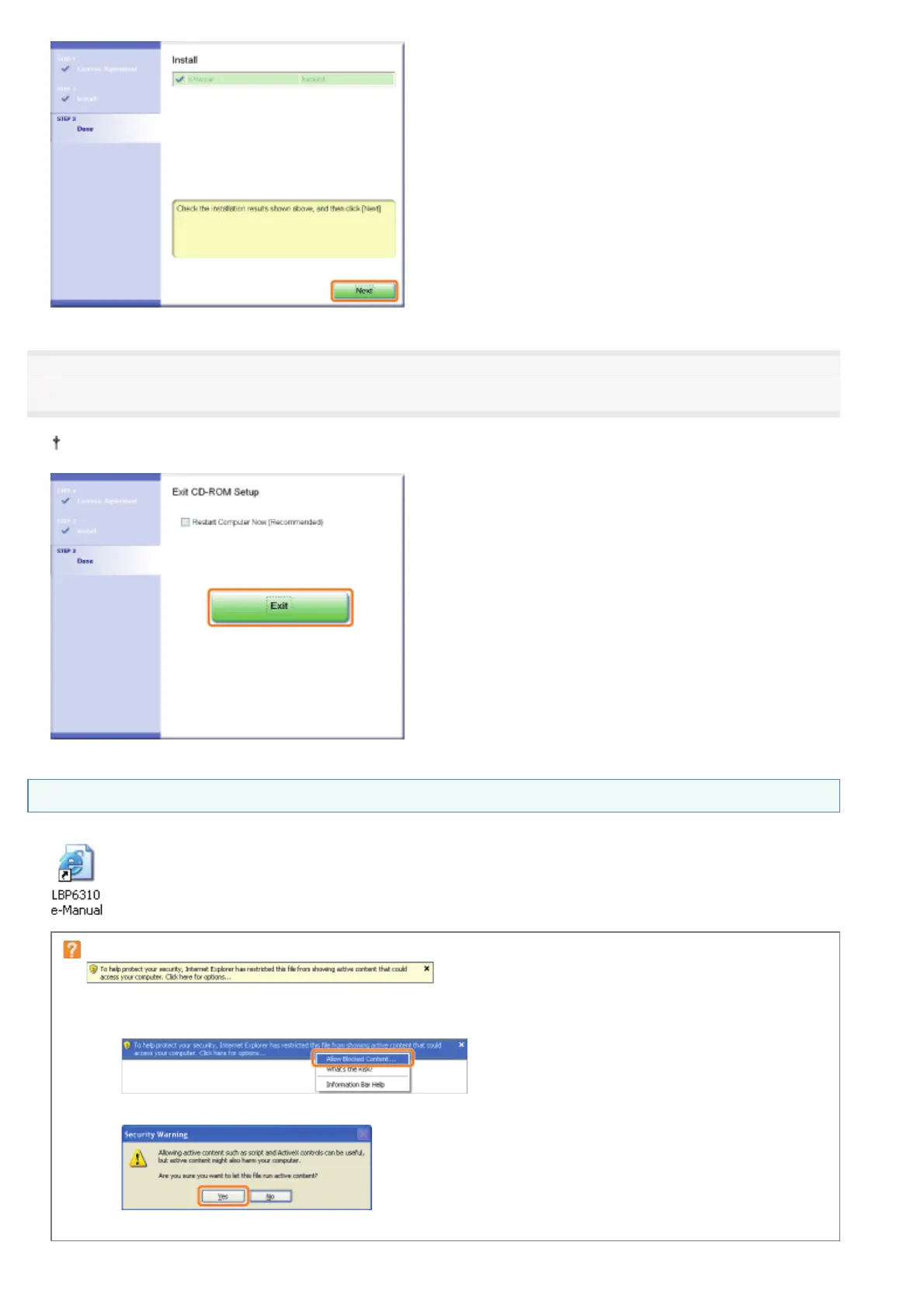 1. Click the information bar, and then select [Allow Blocked Content] from the pop-up menu.