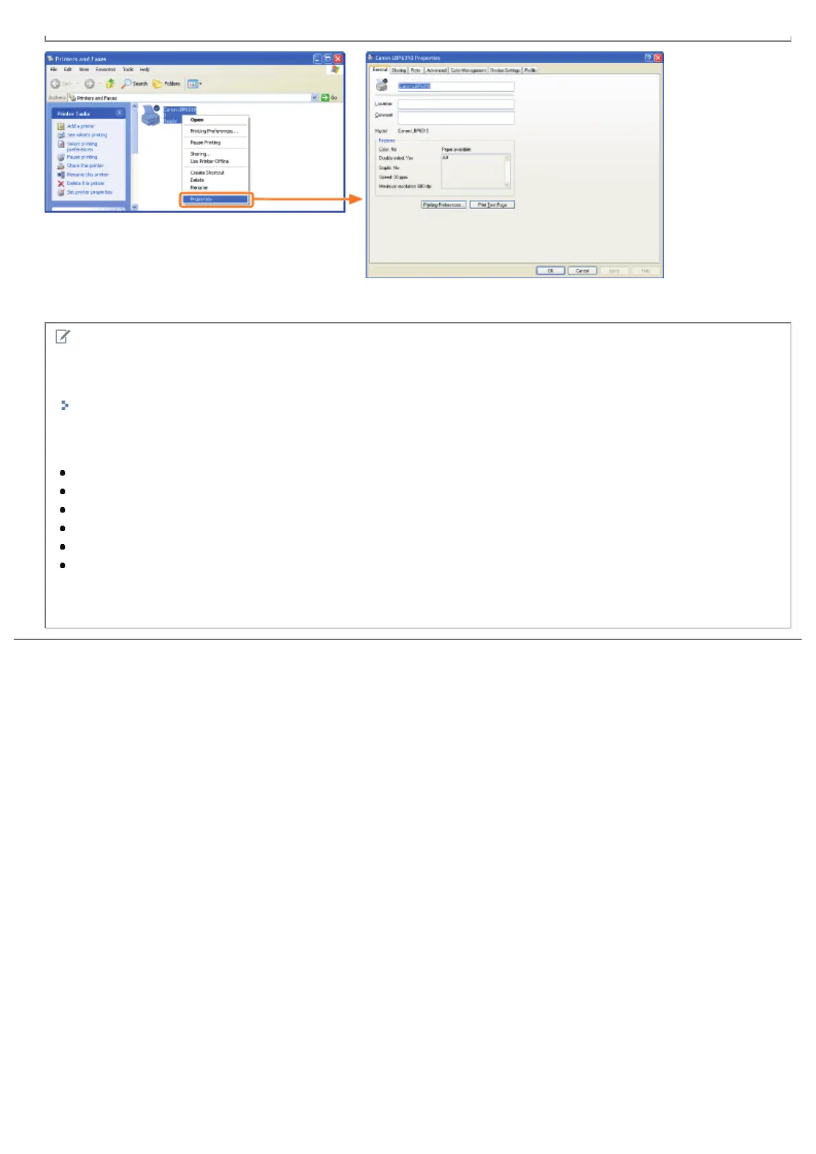The following sheets are displayed by Windows. For more details, see Windows Help.