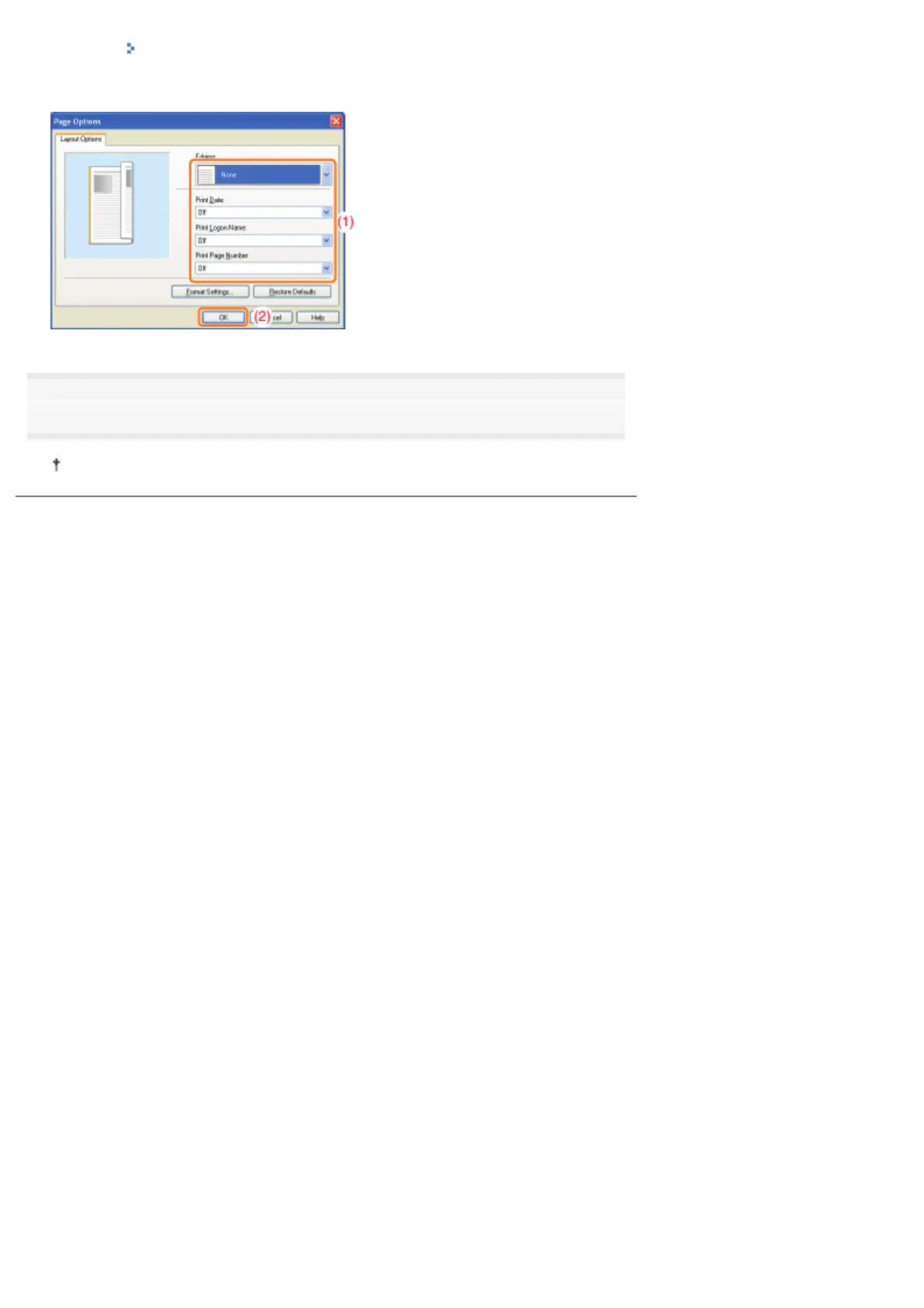 (2) Click [OK]. Then, the [Page Setup] sheet reappears.