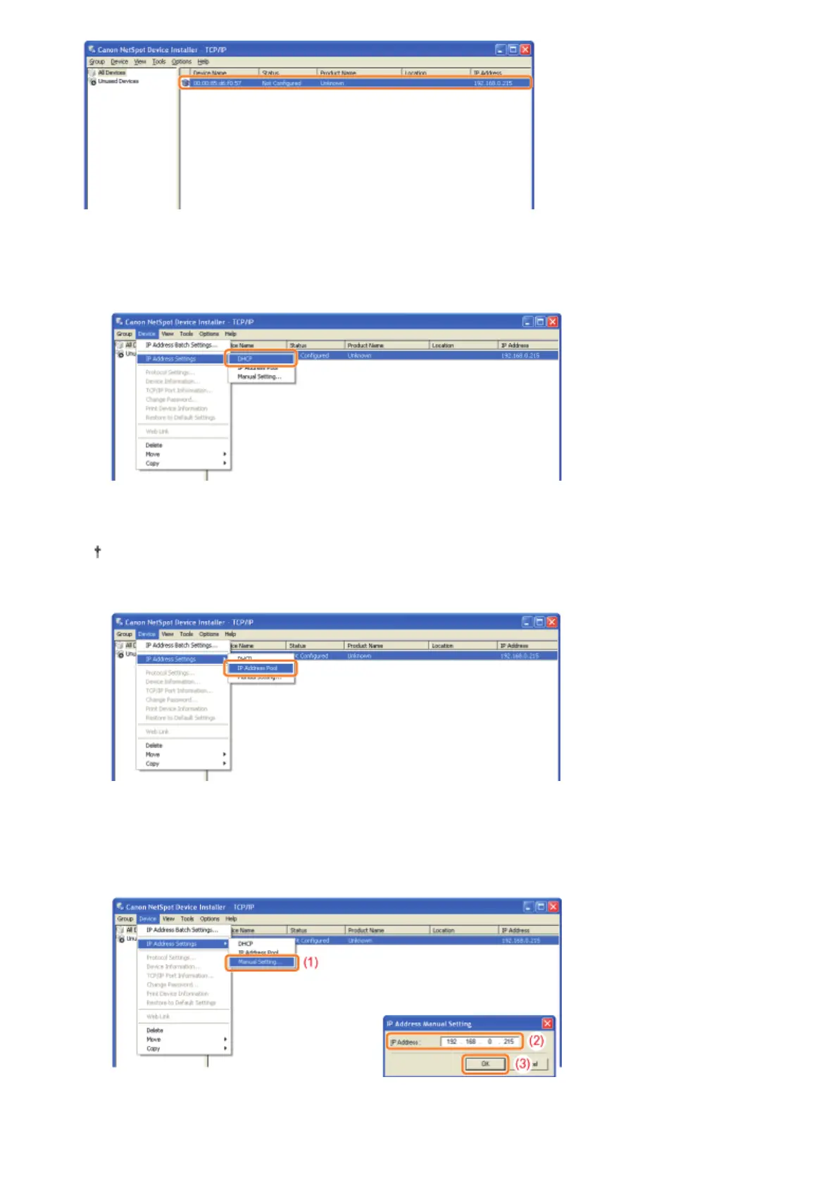 (1) 6HOHFW>,3$GGUHVV6HWWLQJV@ĺ>0DQXDO6HWWLQJ@IURPWKH>'HYLFH@PHQX