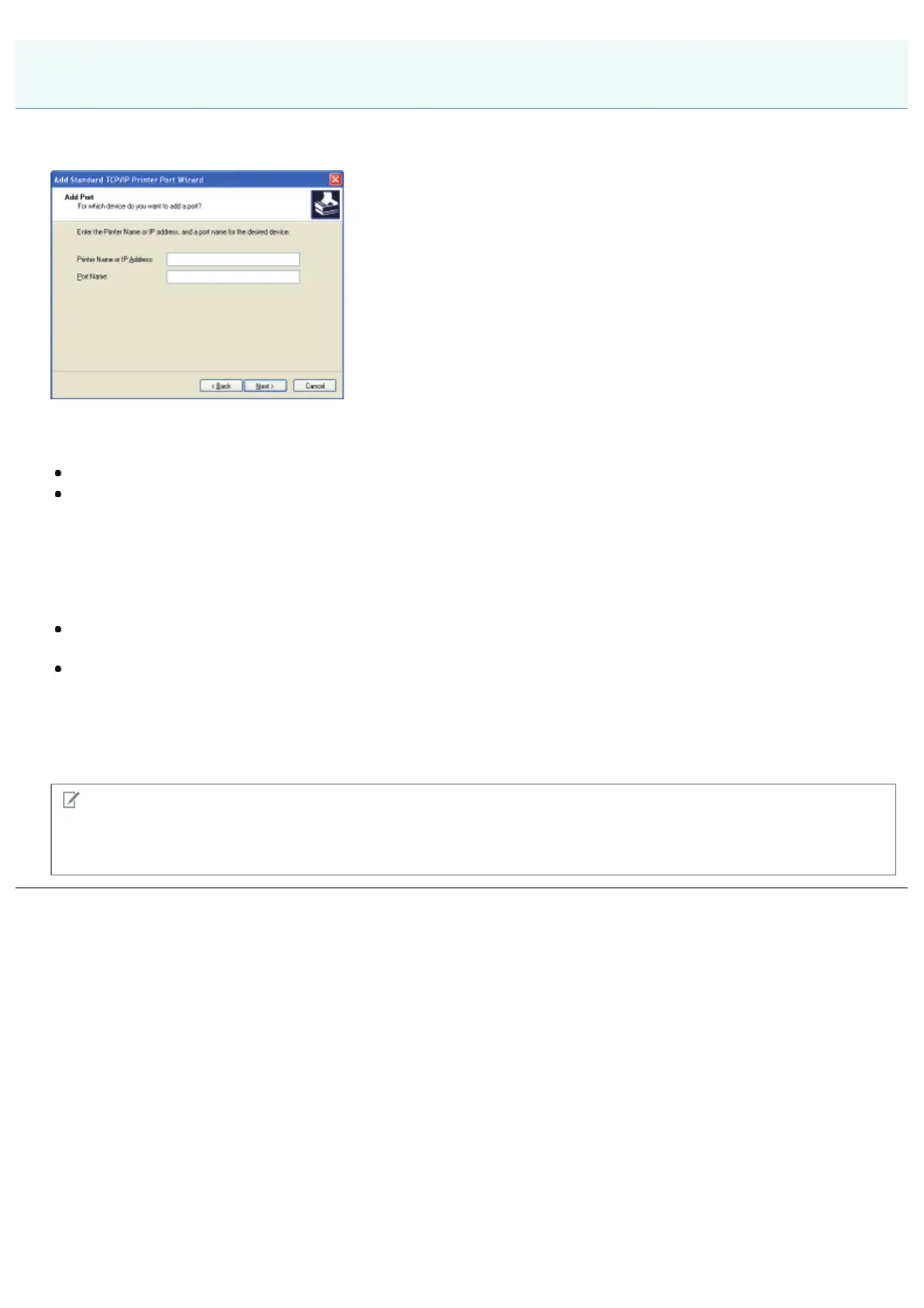 Depending on the method for setting the IP address of the printer, the value to be entered in [Printer Name or IP Address]