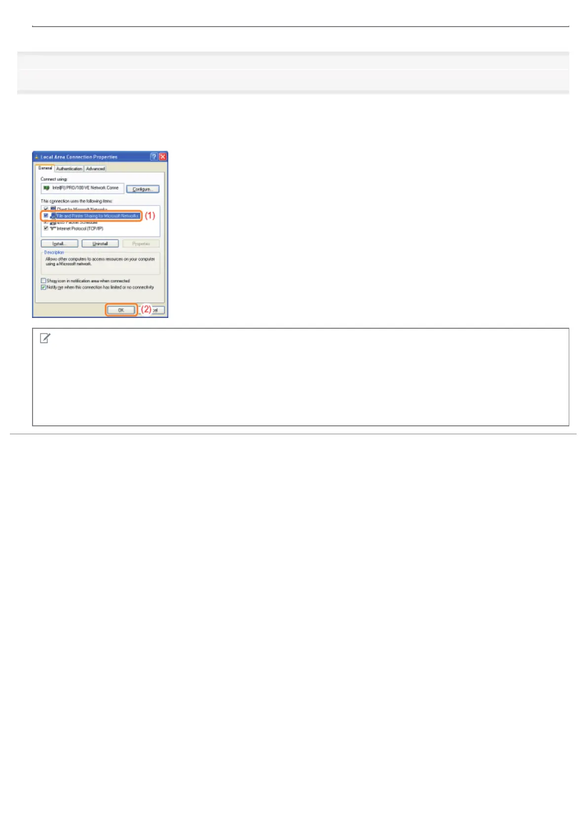 (1) Make sure that the [File and Printer Sharing for Microsoft Networks] check box is selected.