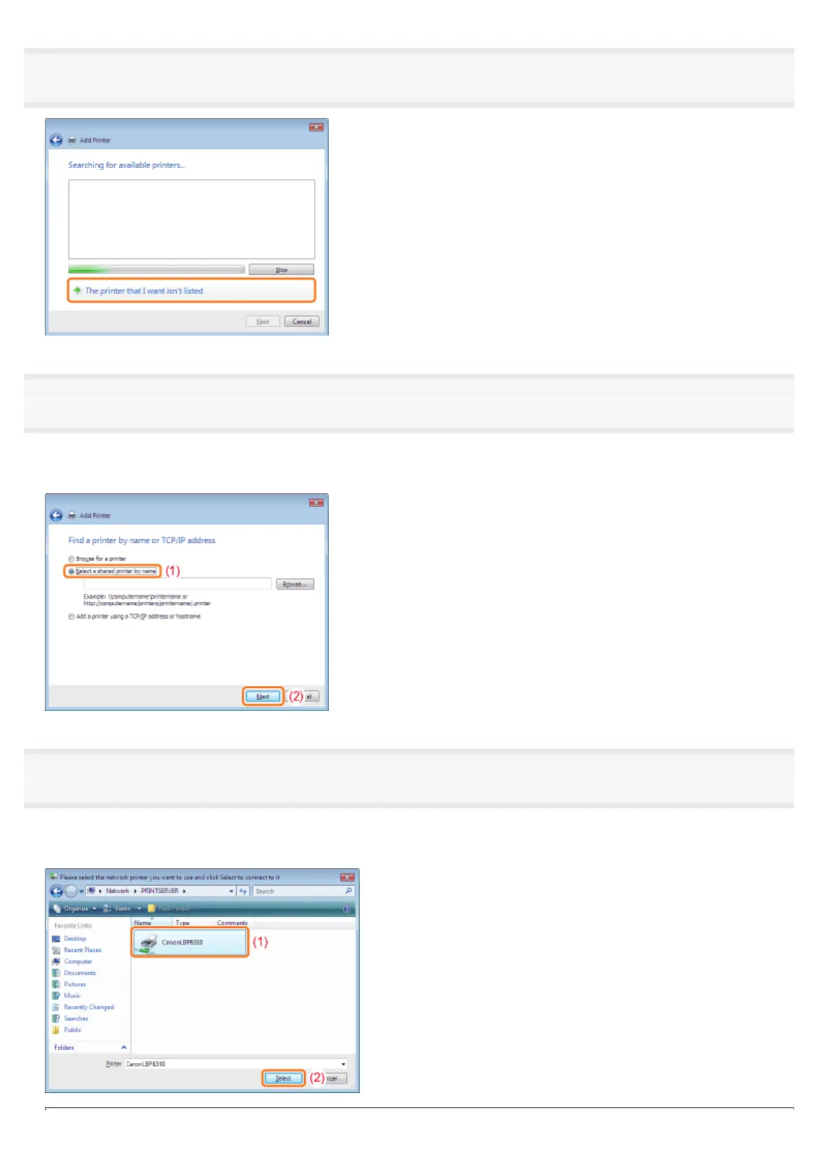 (1) Select [Select a shared printer by name].