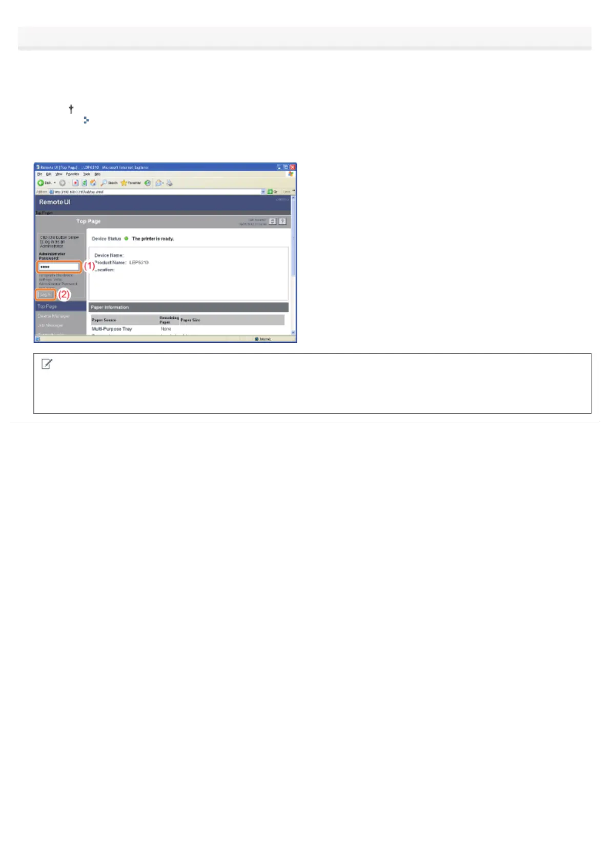 By logging in as Administrator, you can perform all the operations and settings of the Remote UI.