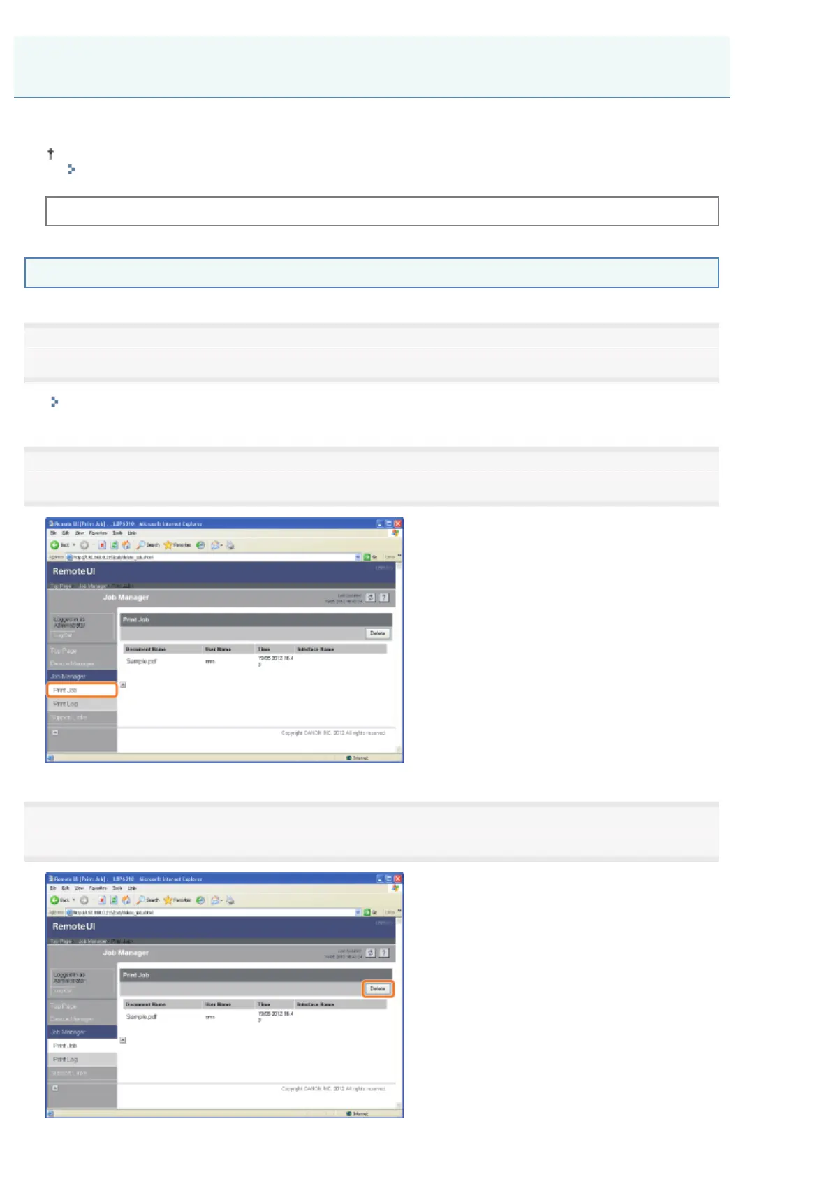You can also delete the job currently being printed using a method other than the Remote UI.